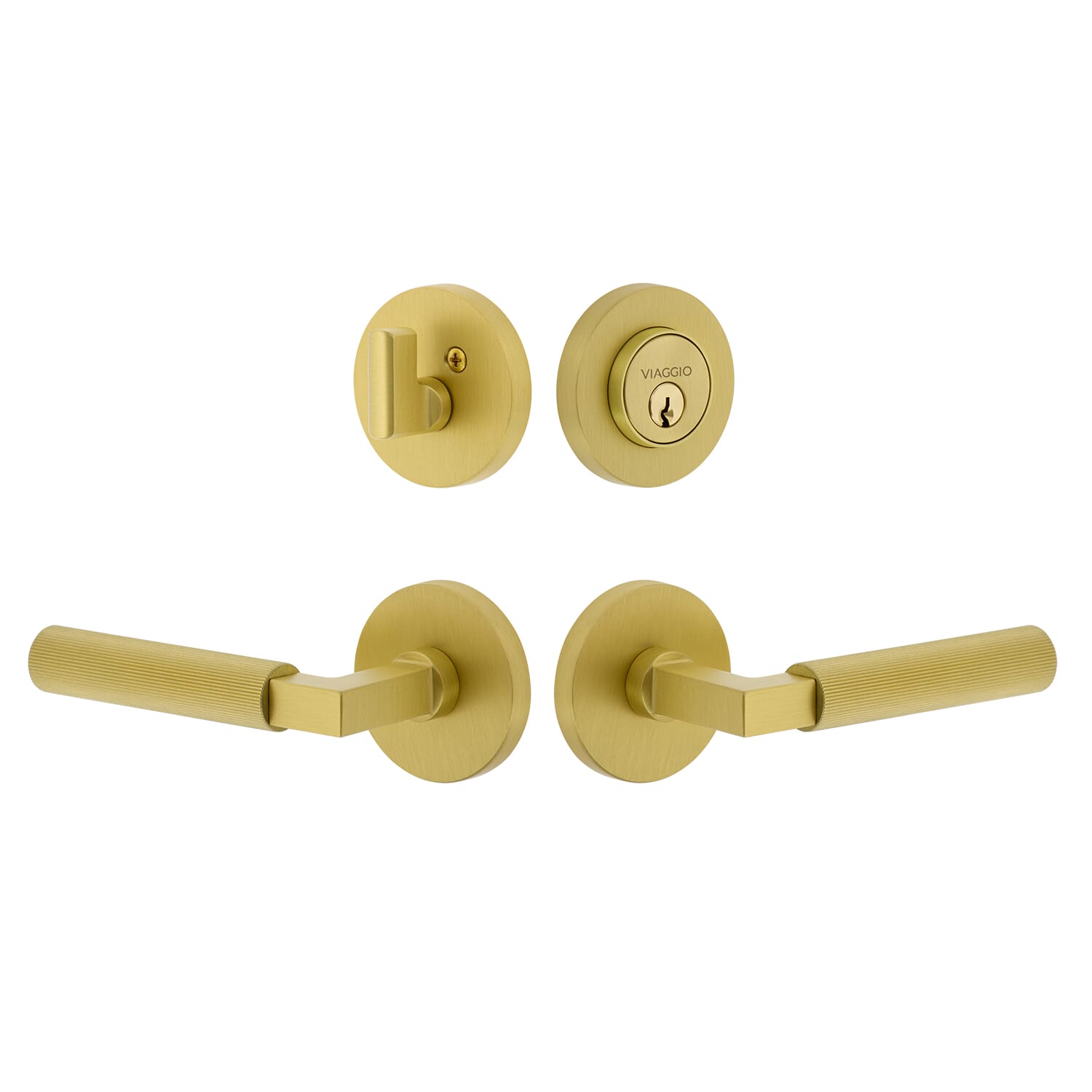 Circolo Rosette Entry Set with Contempo Fluted Lever in Satin Brass