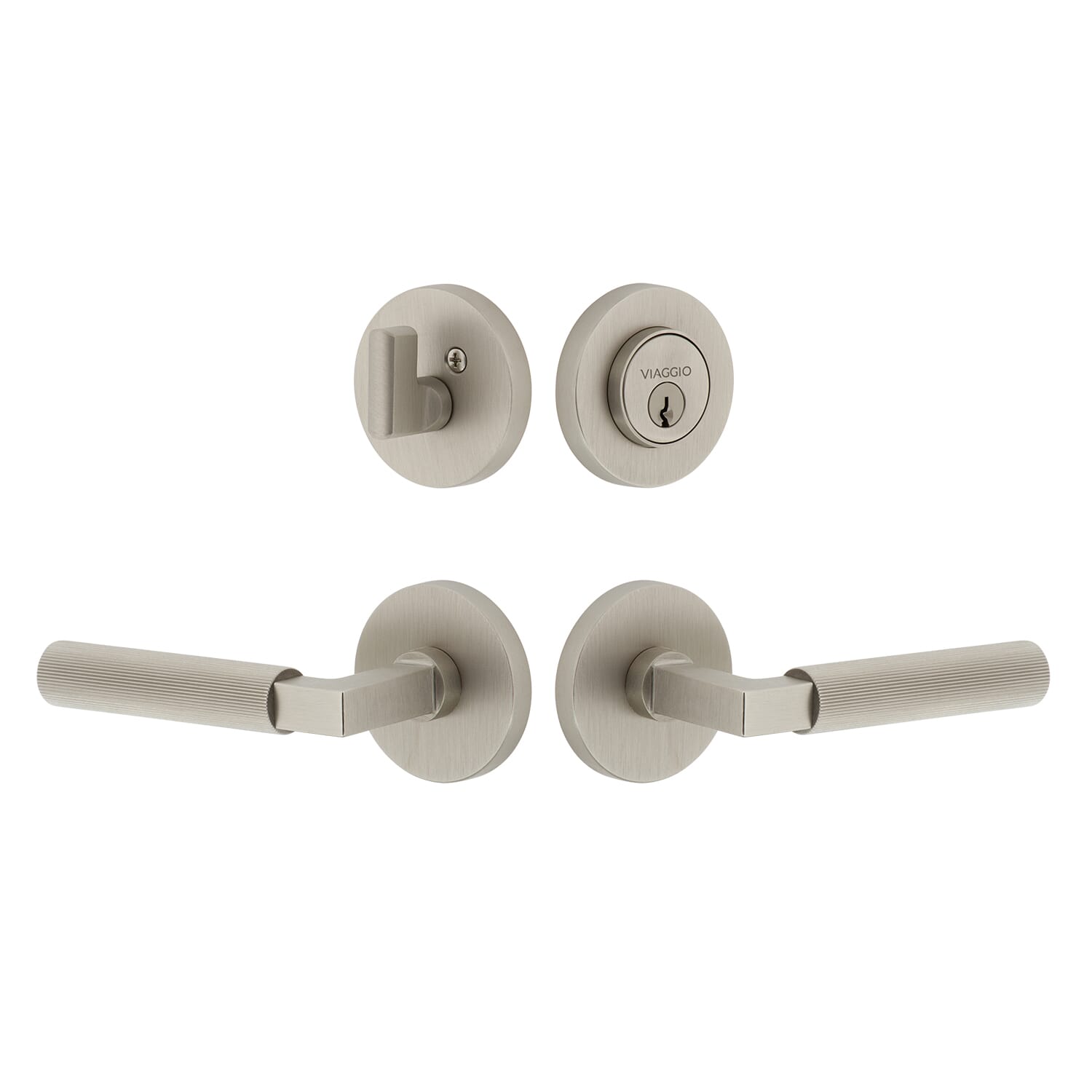 Circolo Rosette Entry Set with Contempo Fluted Lever in Satin Nickel