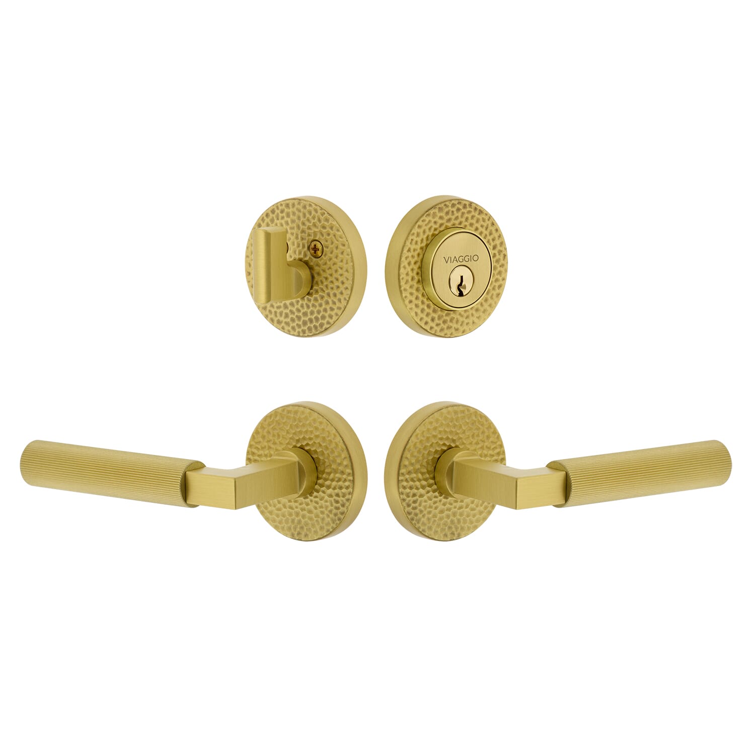 Circolo Hammered Rosette Entry Set with Contempo Fluted Lever in Satin Brass