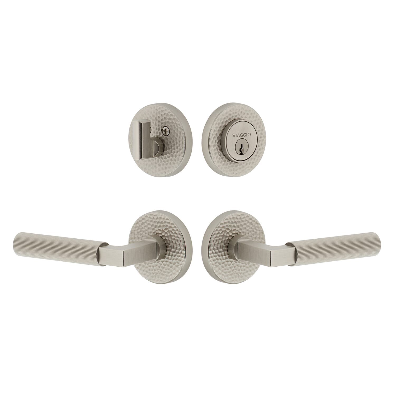 Circolo Hammered Rosette Entry Set with Contempo Fluted Lever in Satin Nickel