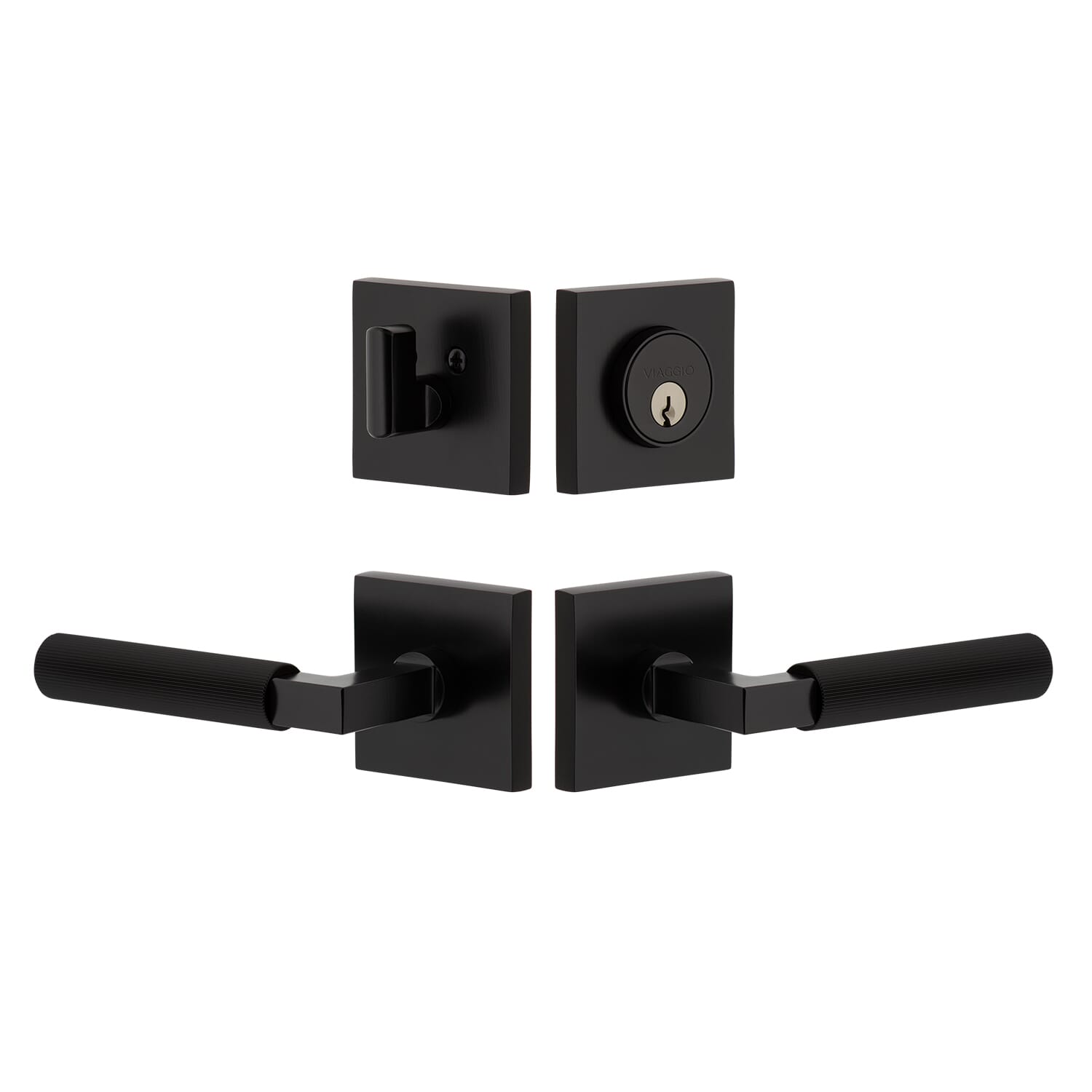 Quadrato Rosette Entry Set with Contempo Fluted Lever in Satin Black