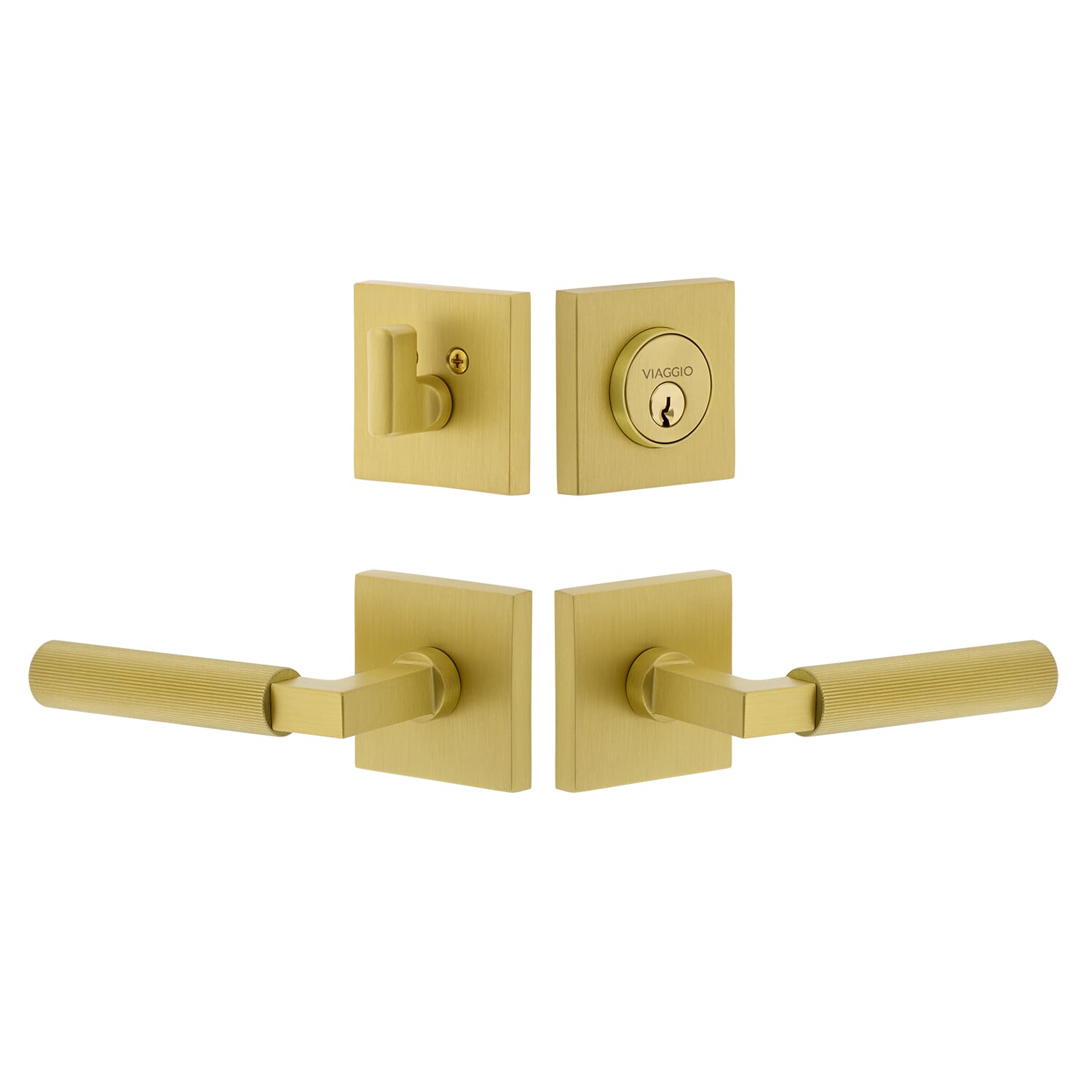 Quadrato Rosette Entry Set with Contempo Fluted Lever in Satin Brass