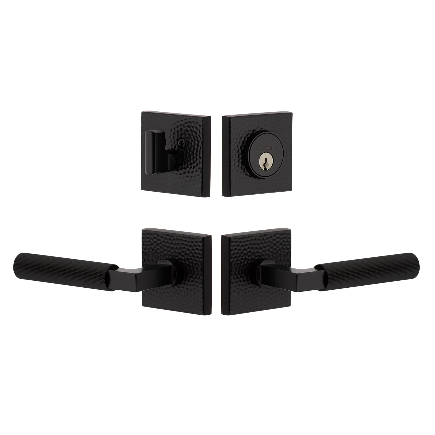 Quadrato Hammered Rosette Entry Set with Contempo Fluted Lever in Satin Black