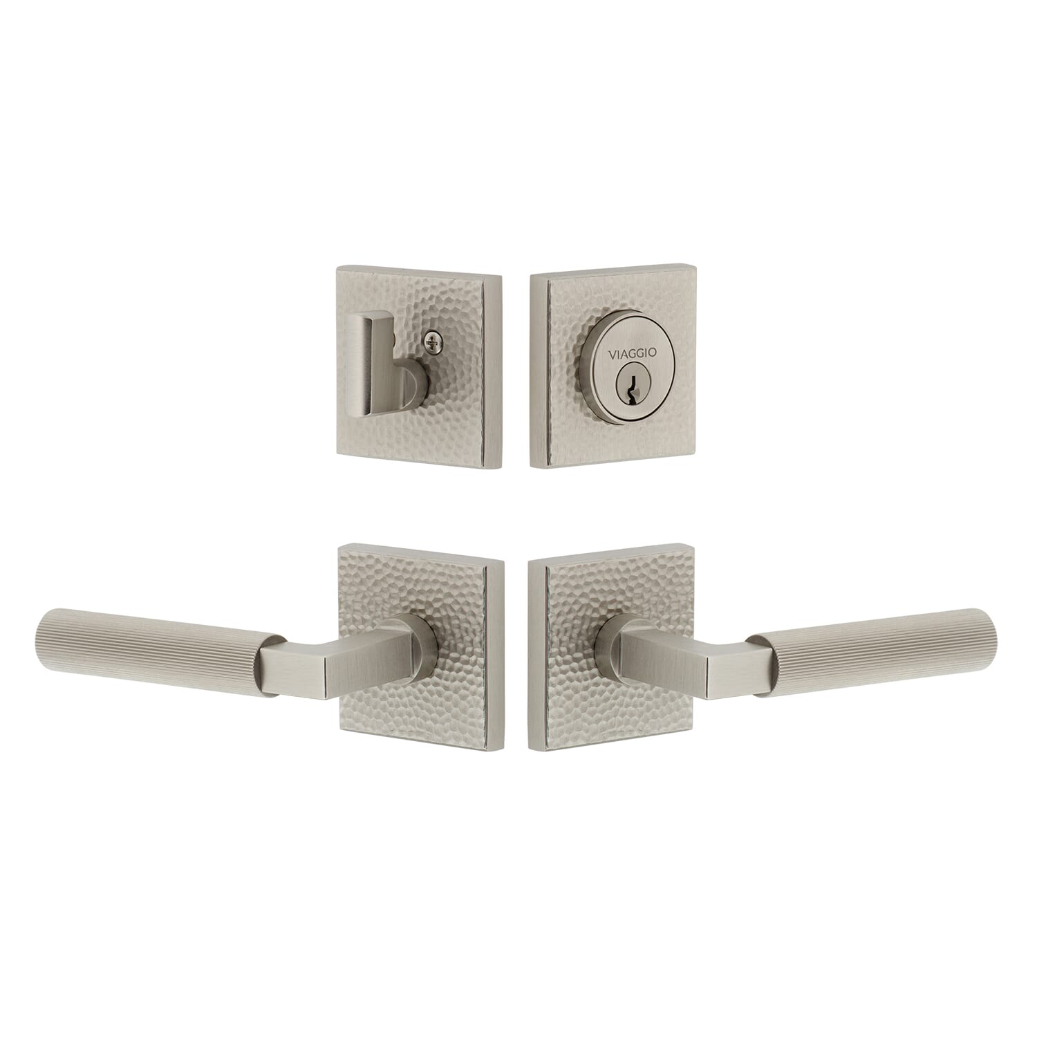 Quadrato Hammered Rosette Entry Set with Contempo Fluted Lever in Satin Nickel
