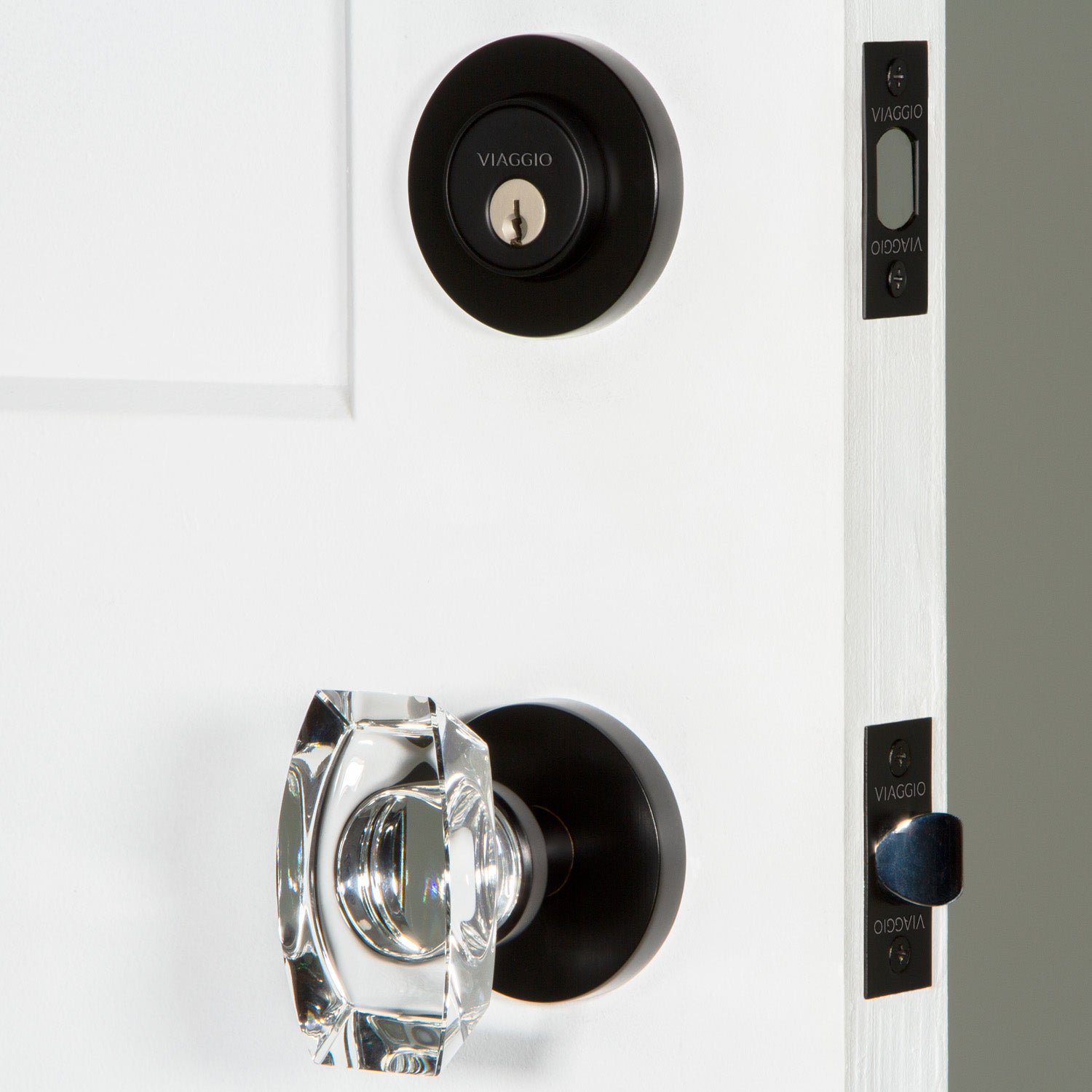 Circolo Rosette Entry Set with Circolo Crystal Knob in Satin Black