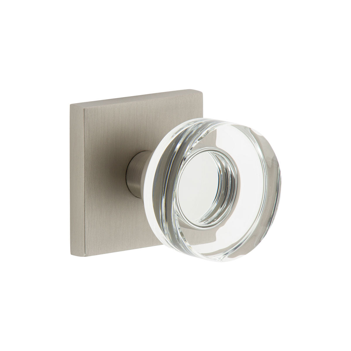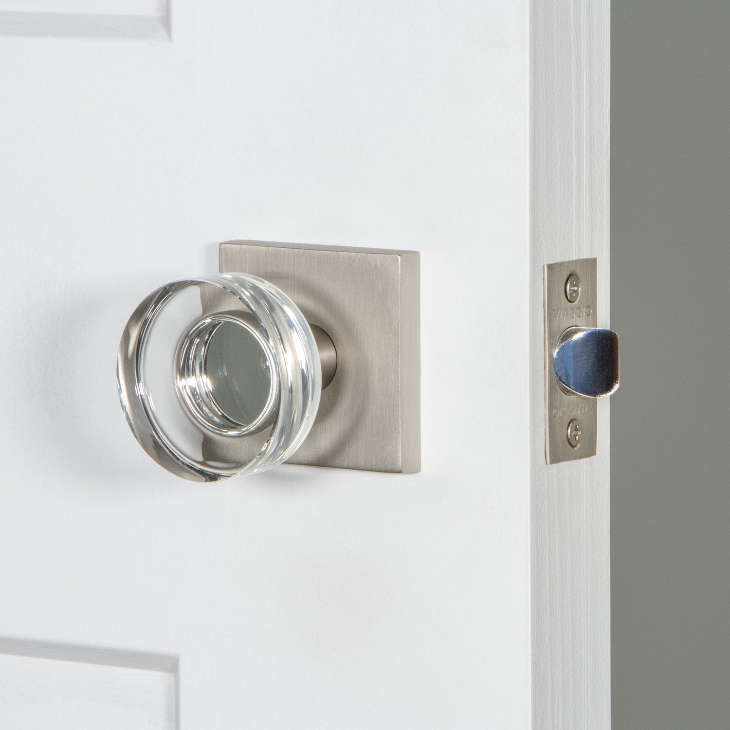 Quadrato Rosette Entry Set with Circolo Crystal Knob in Satin Brass