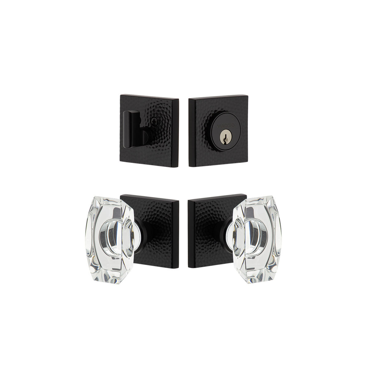 Quadrato Hammered Rosette Entry Set with Stella Knob in Satin Black