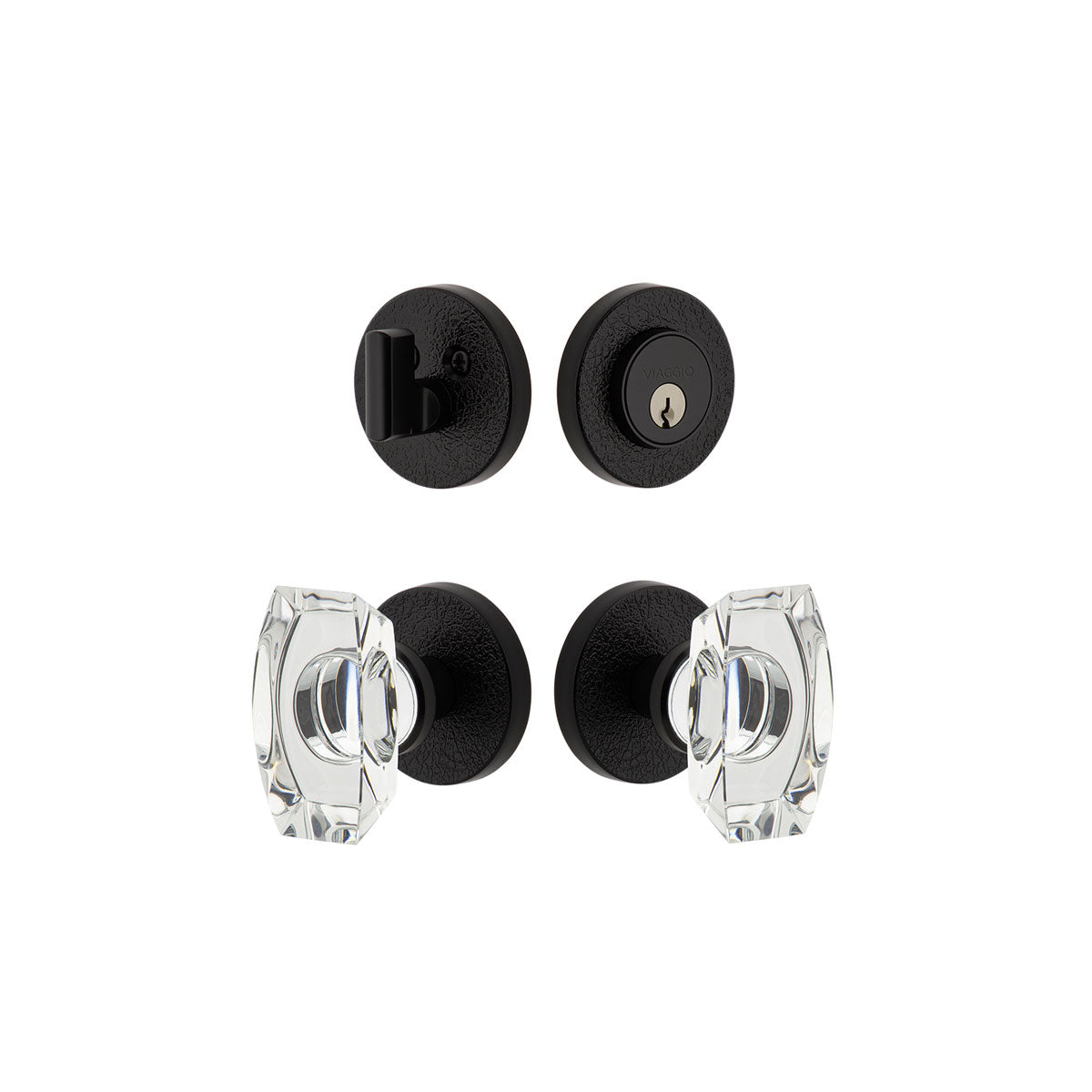 Circolo Hammered Rosette Entry Set with Stella Knob in Satin Black