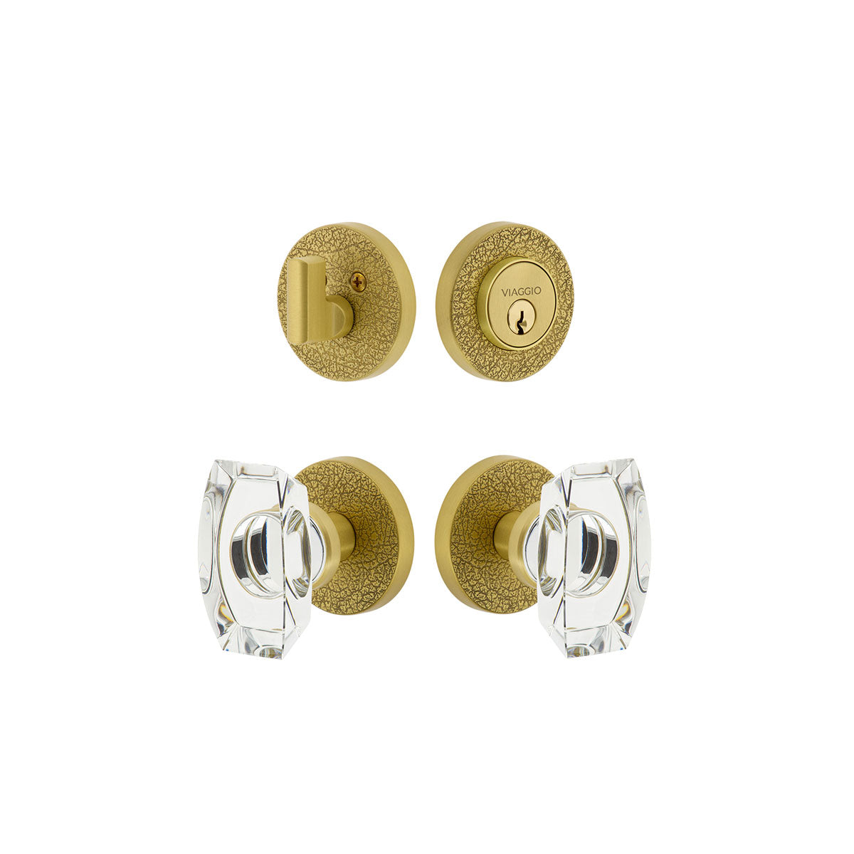 Circolo Hammered Rosette Entry Set with Stella Knob in Satin Brass