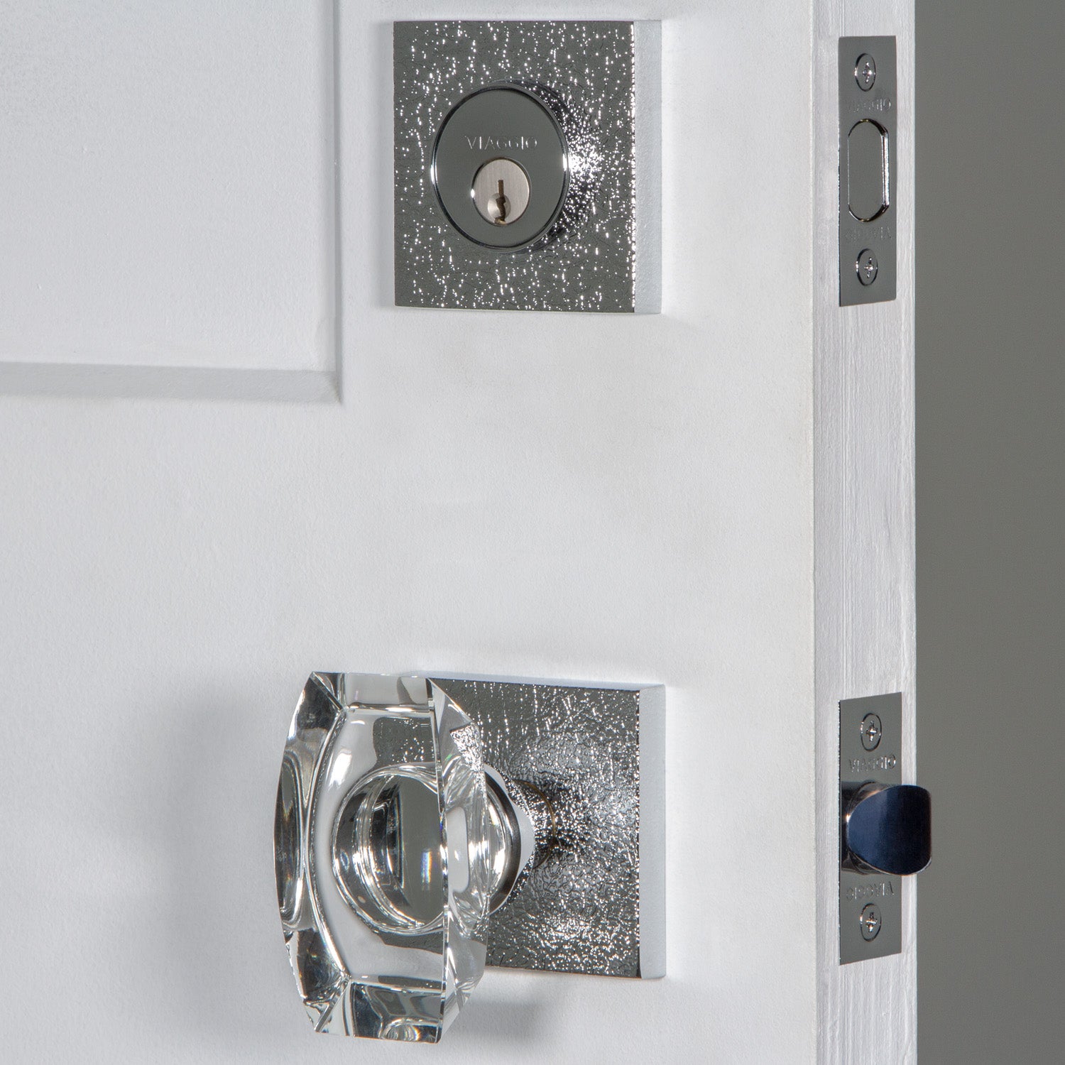Circolo Hammered Rosette Entry Set with Stella Knob in Bright Chrome