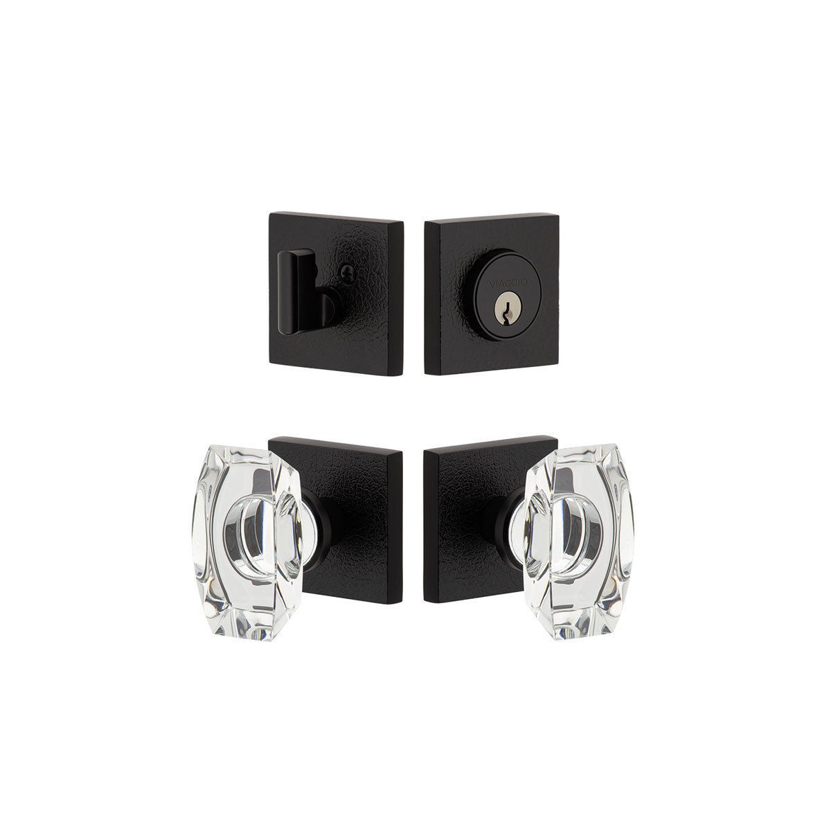 Quadrato Leather Rosette Entry Set with Stella Knob in Satin Black