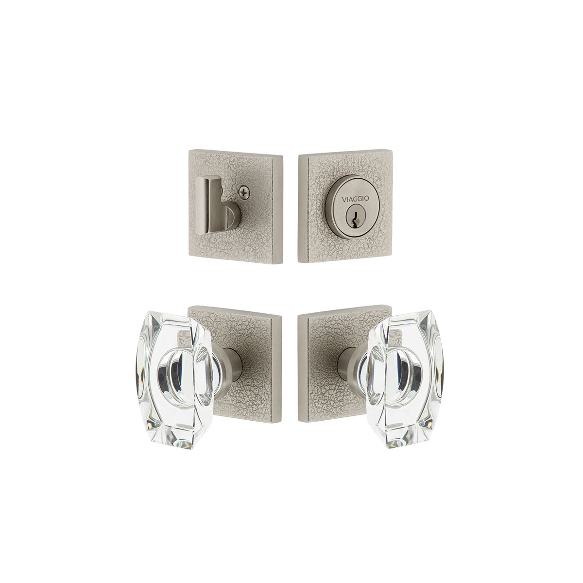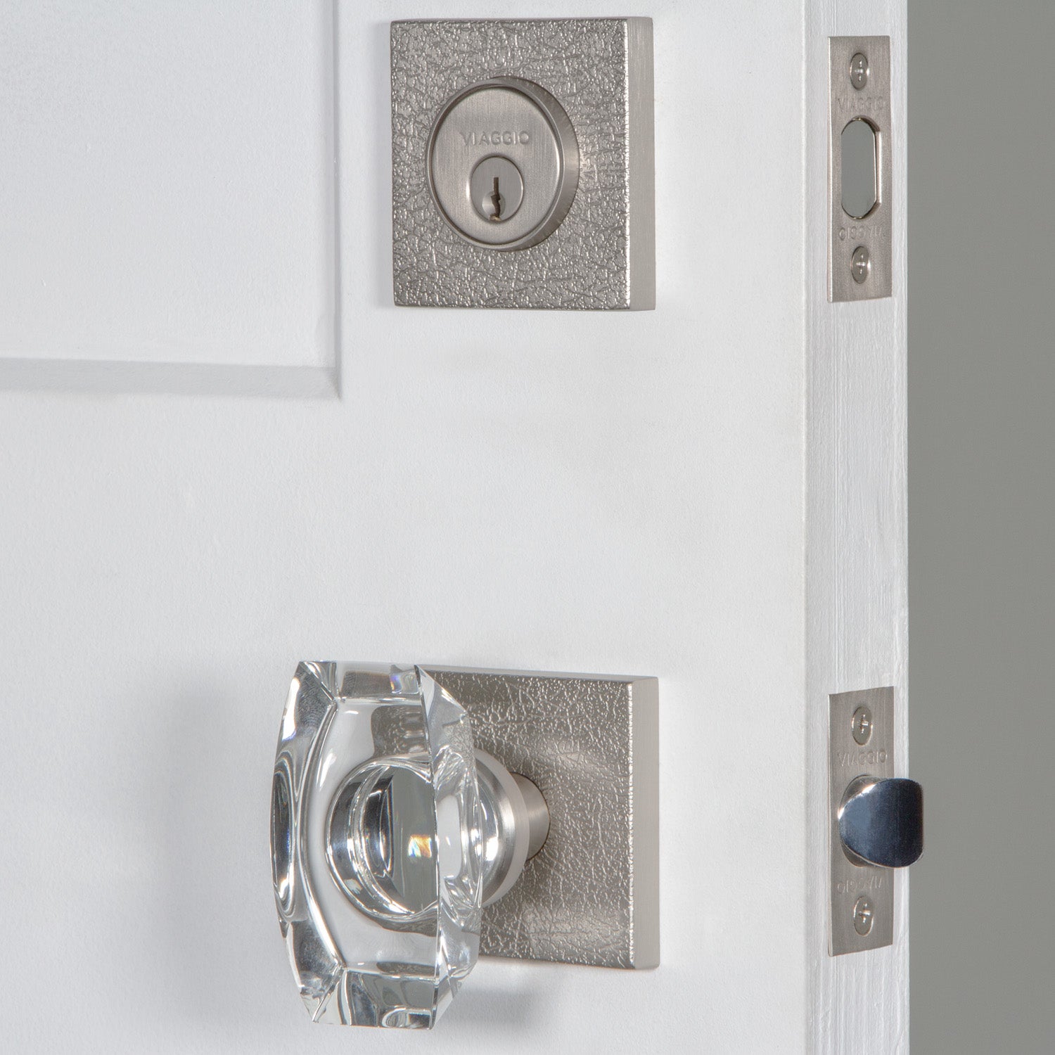 Quadrato Leather Rosette Entry Set with Stella Knob in Satin Nickel