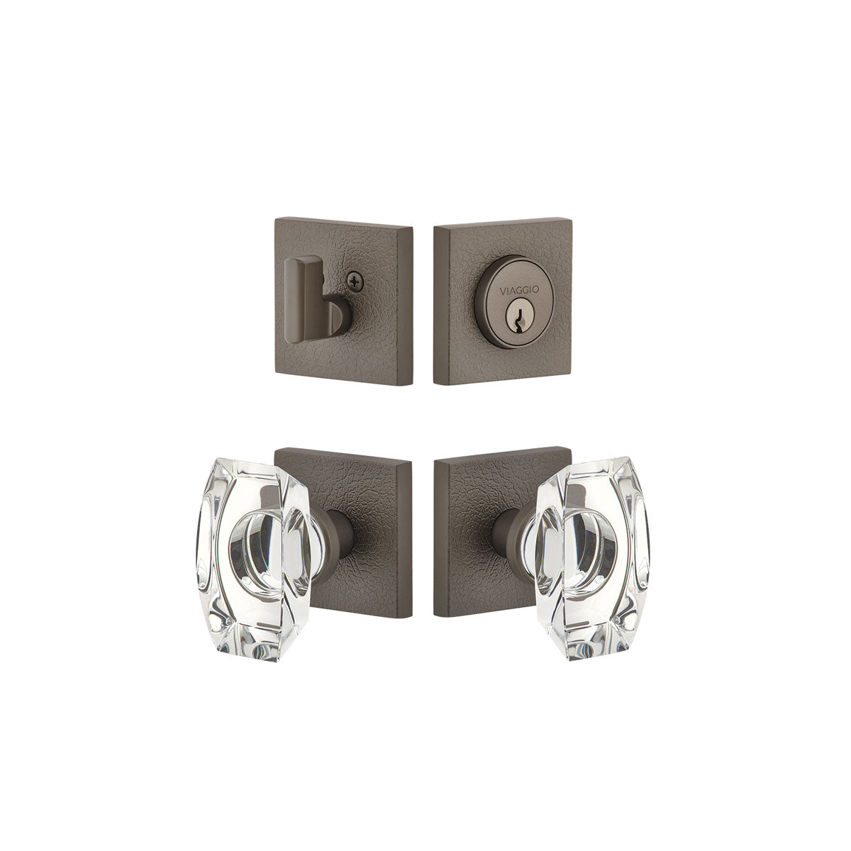 Quadrato Leather Rosette Entry Set with Stella Knob in Titanium Gray