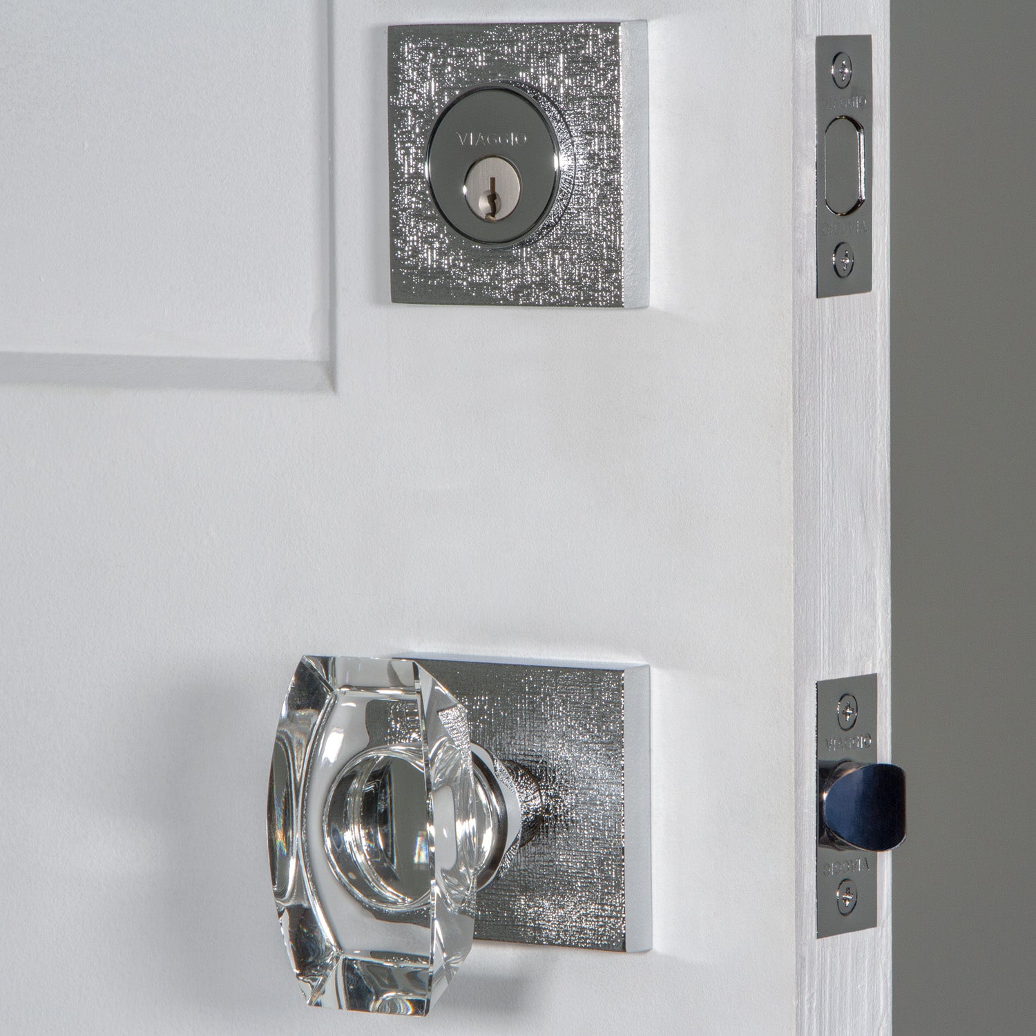 Quadrato Linen Rosette Entry Set with Stella Knob in Bright Chrome