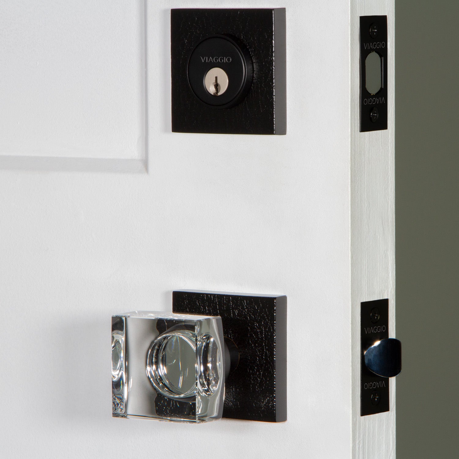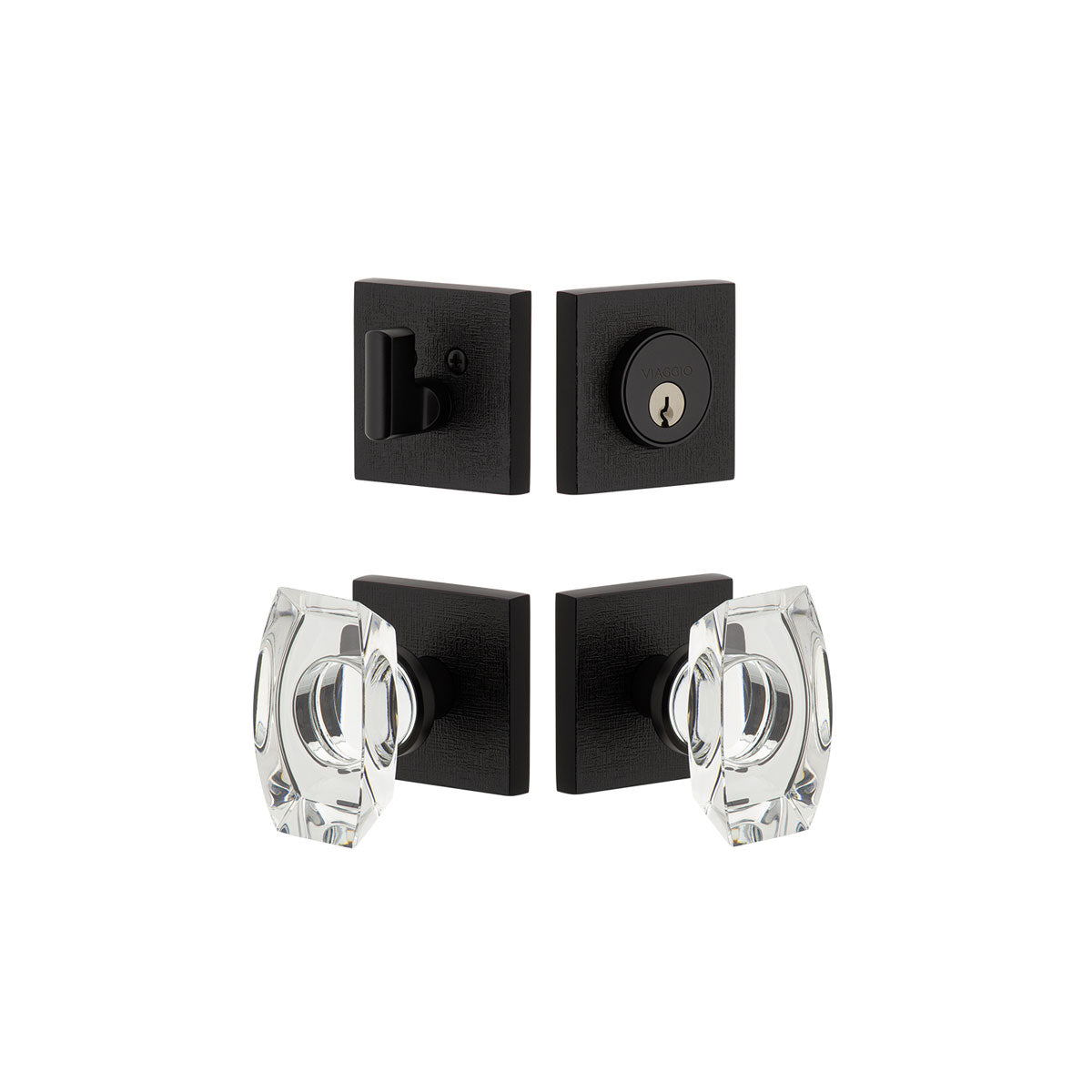 Quadrato Leather Rosette Entry Set with Quadrato Crystal Knob in Satin Black