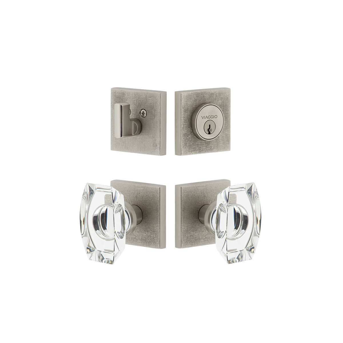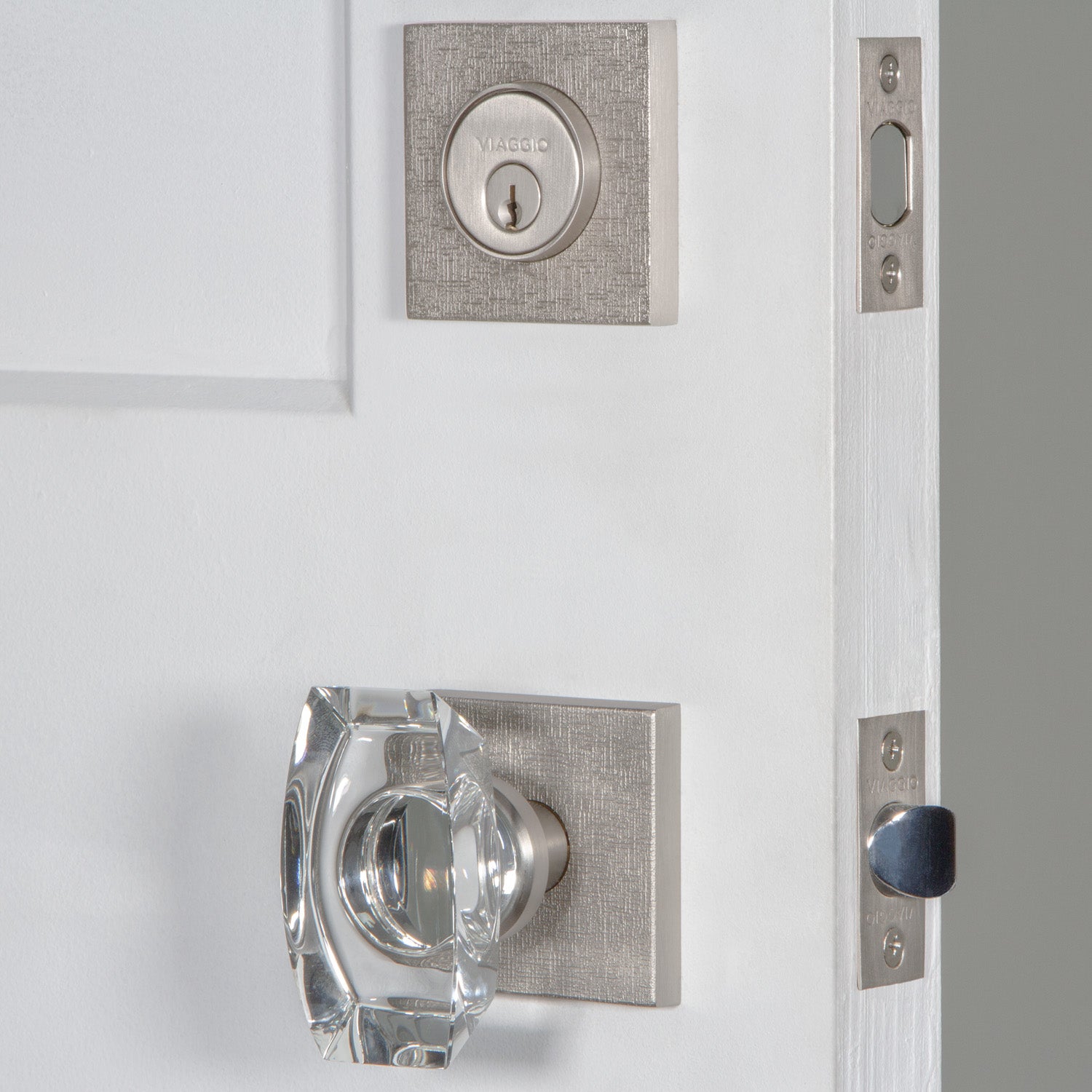 Quadrato Linen Rosette Entry Set with Stella Knob in Satin Nickel
