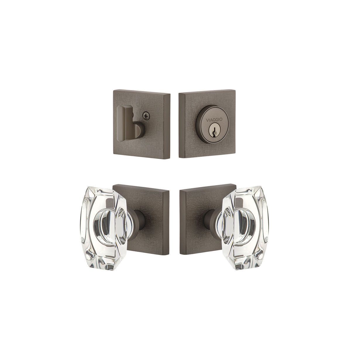 Quadrato Linen Rosette Entry Set with Stella Knob in Titanium Gray