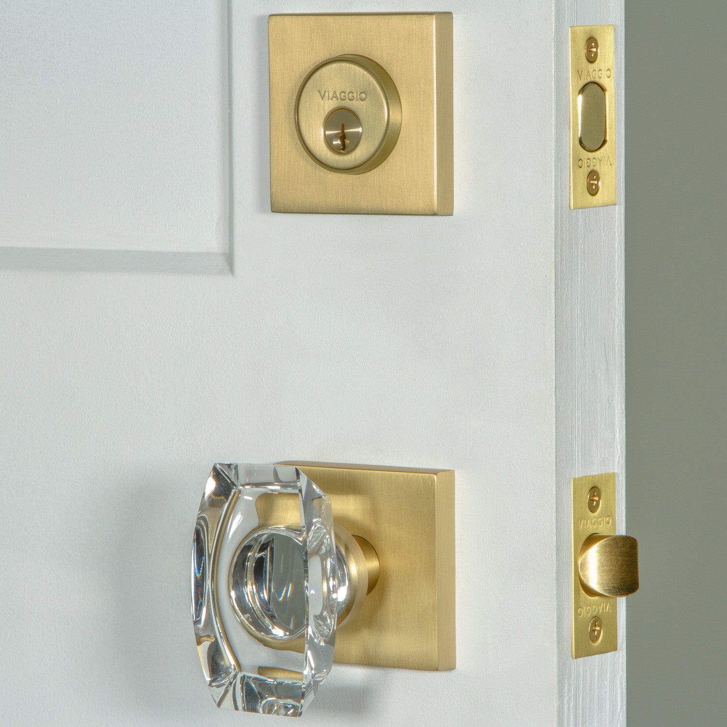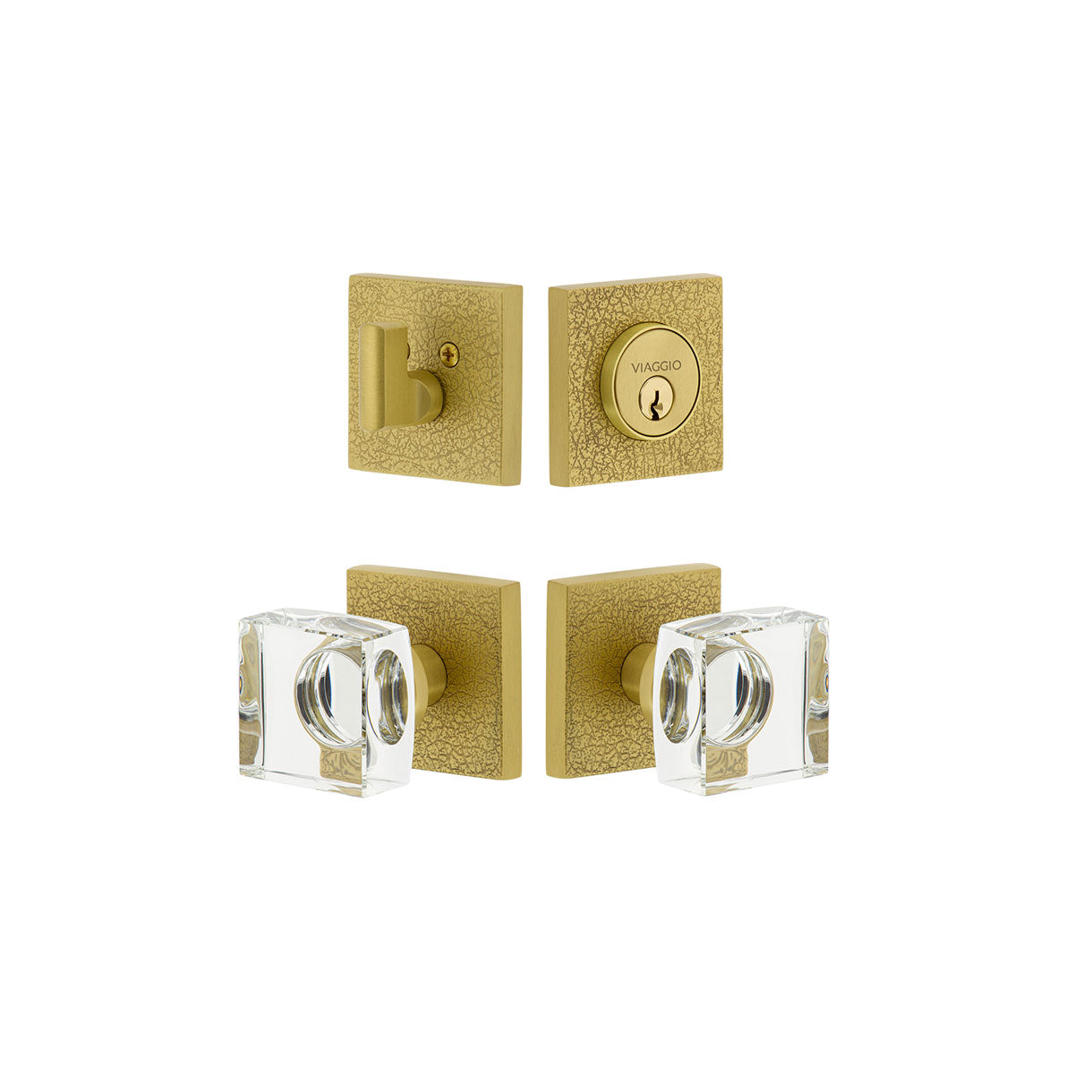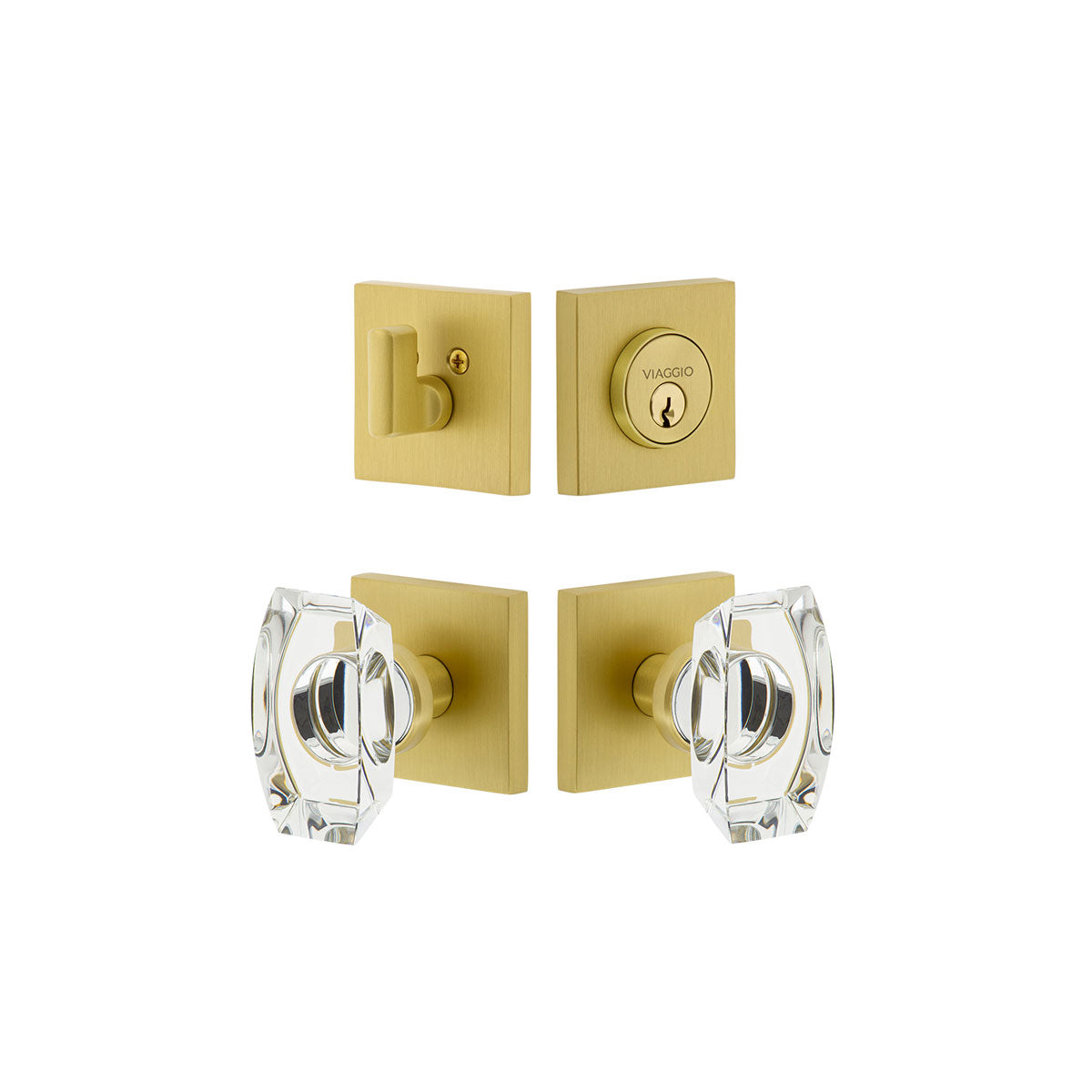 Quadrato Rosette Entry Set with Stella Knob in Satin Brass