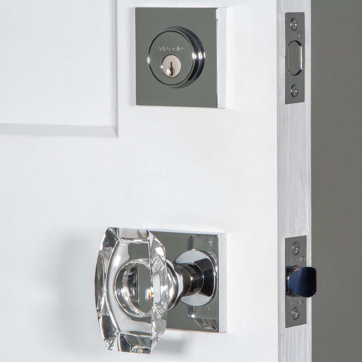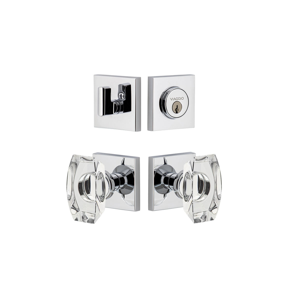 Quadrato Rosette Entry Set with Stella Knob in Bright Chrome