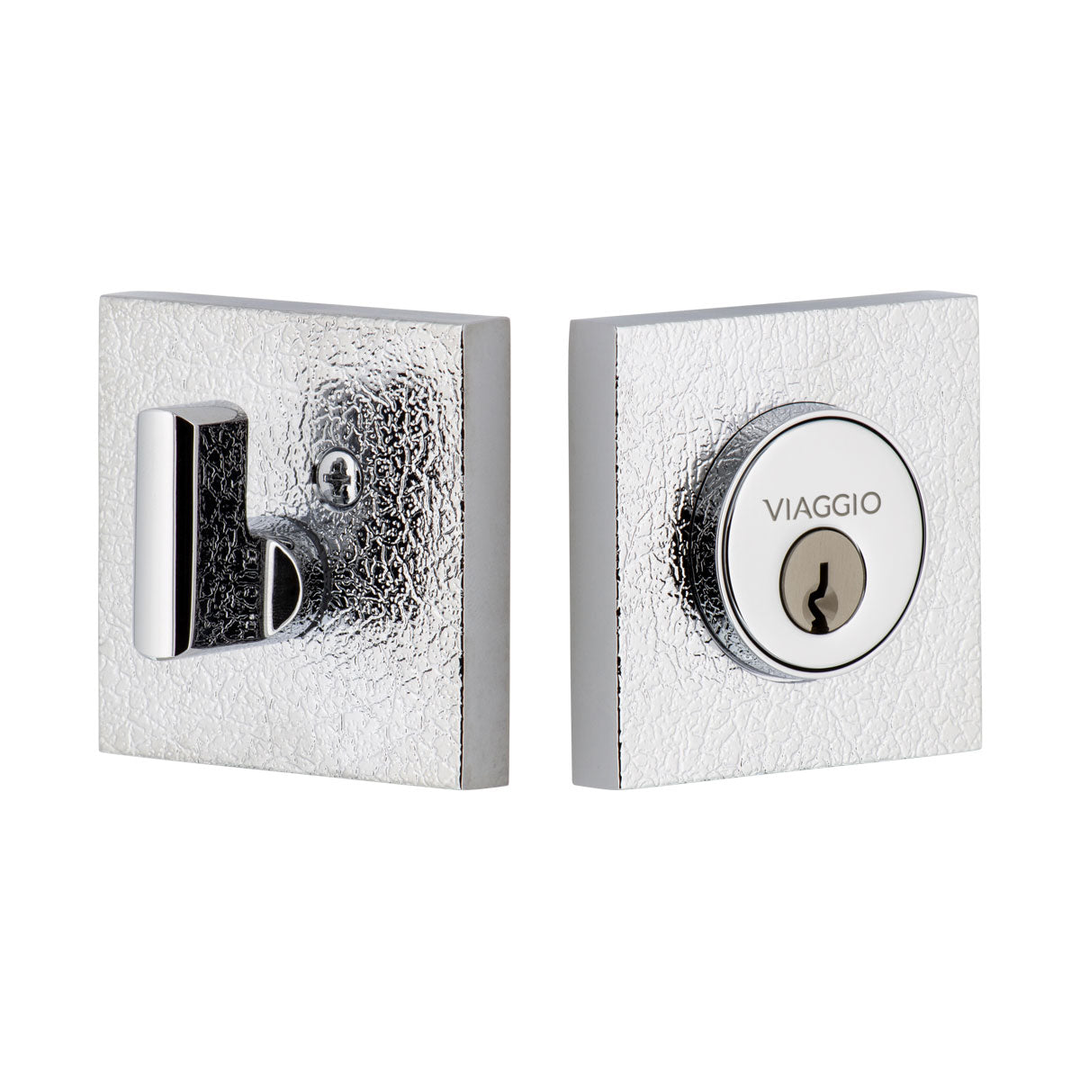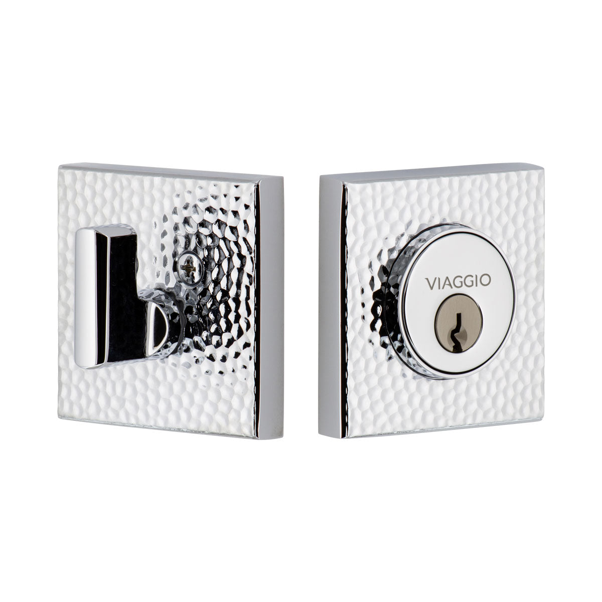 Quadrato Hammered Single Cylinder Deadbolt in Bright Chrome