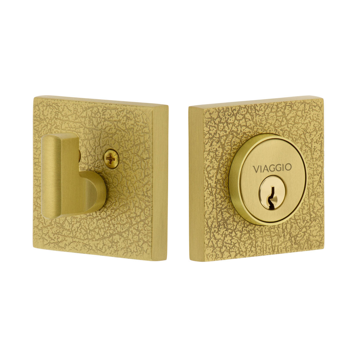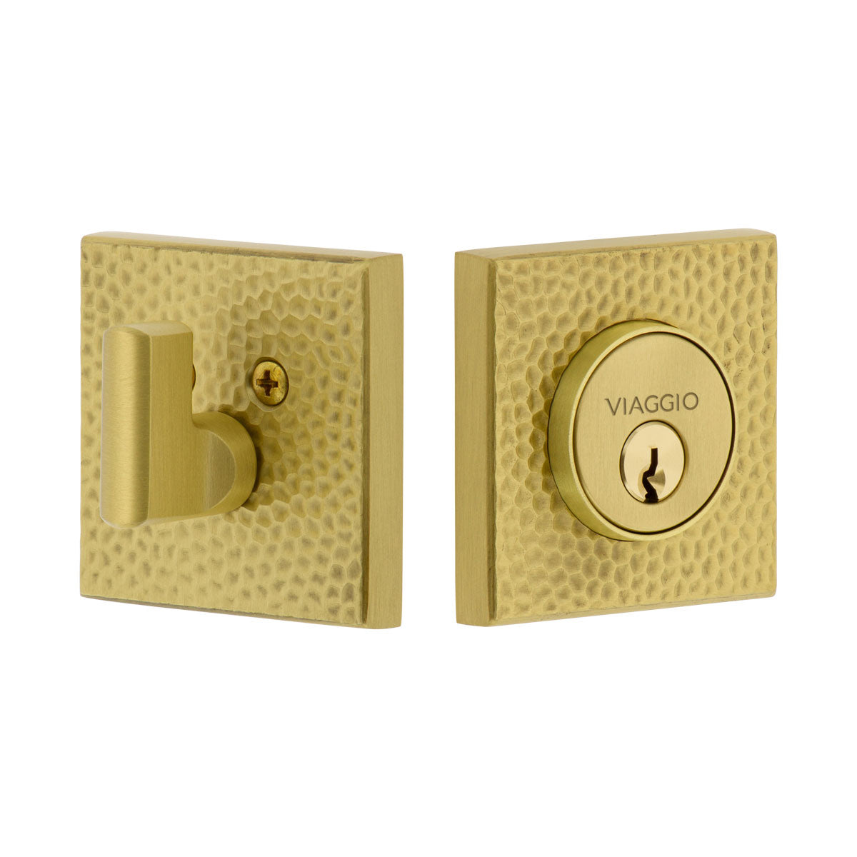 Quadrato Hammered Single Cylinder Deadbolt in Satin Brass
