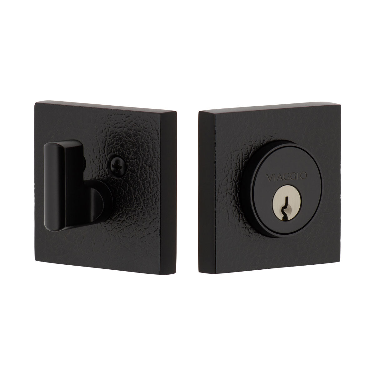 Quadrato Hammered Single Cylinder Deadbolt in Satin Black