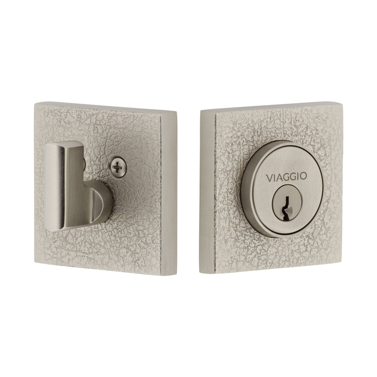 Quadrato Leather Single Cylinder Deadbolt in Satin Nickel