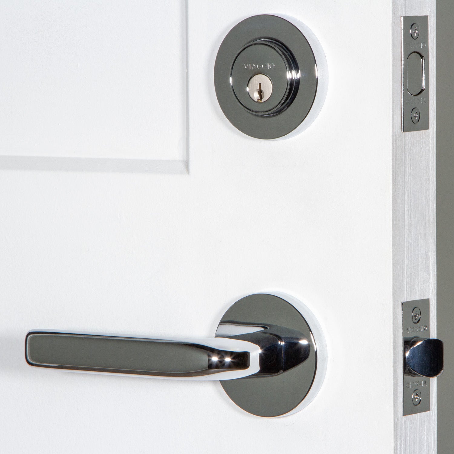 Circolo Rosette Entry Set with Bella Lever in Bright Chrome