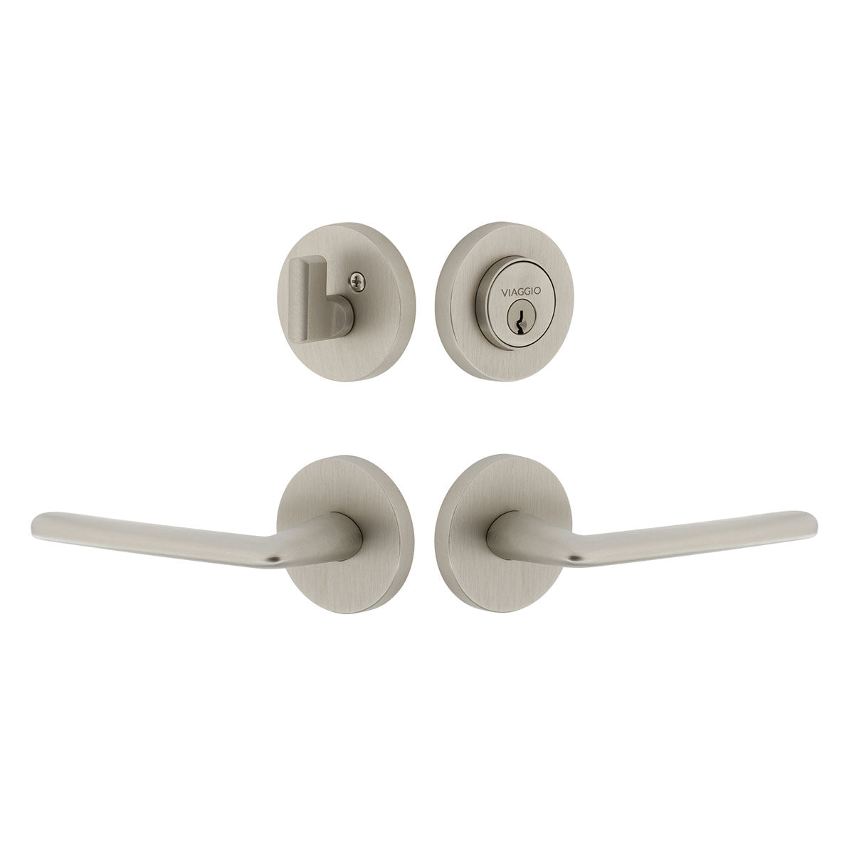 Circolo Rosette Entry Set with Brezza Lever in Satin Nickel