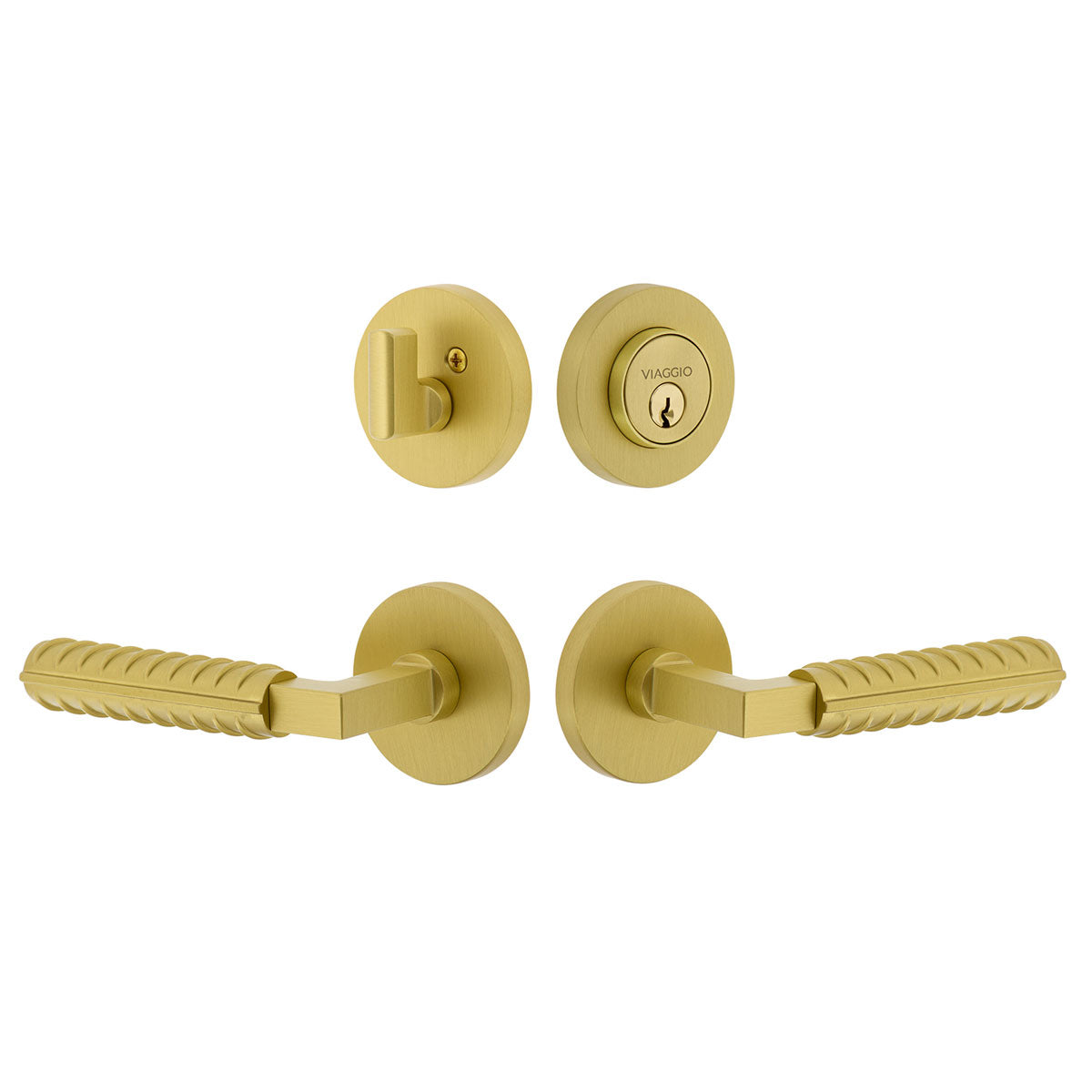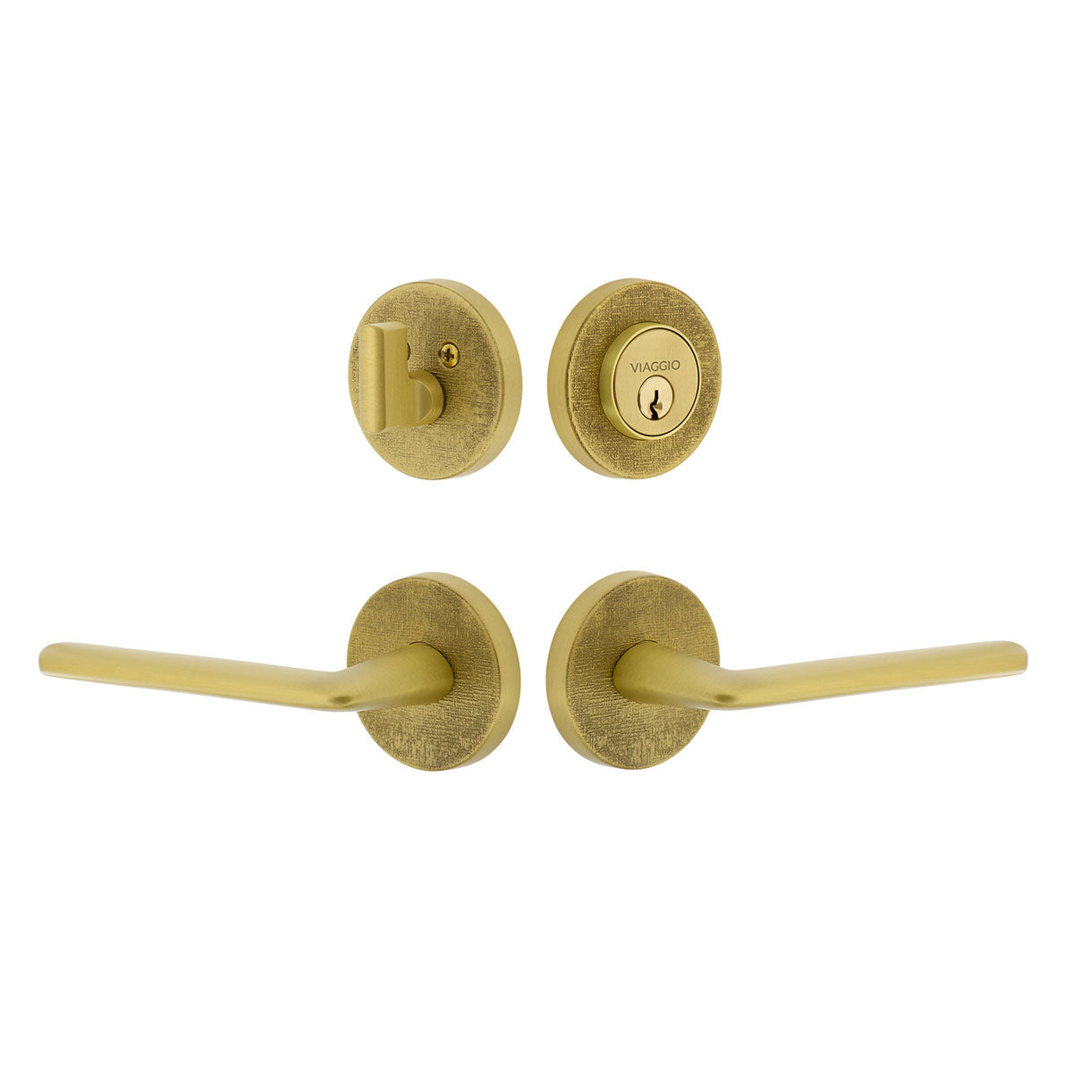 Circolo Linen Rosette Entry Set with Brezza Lever in Satin Brass