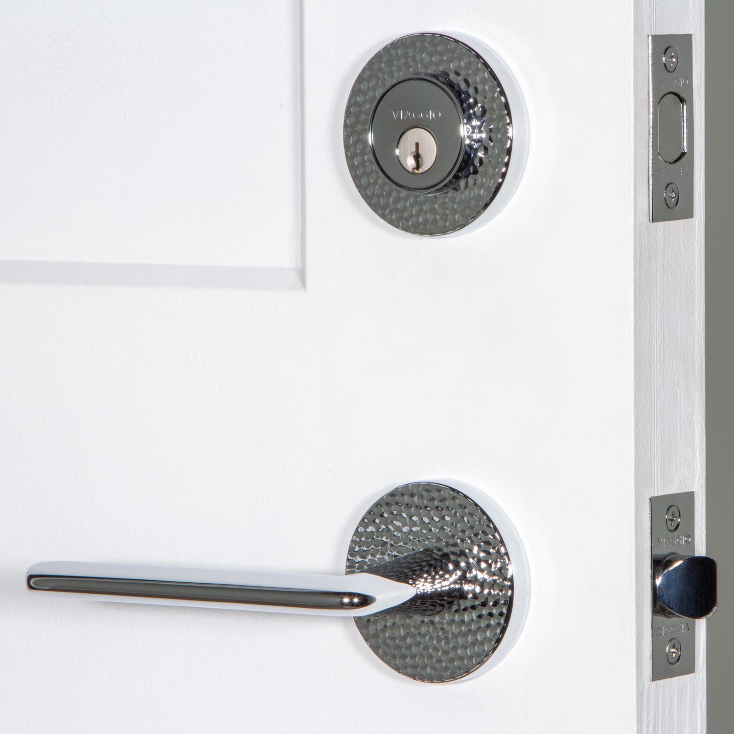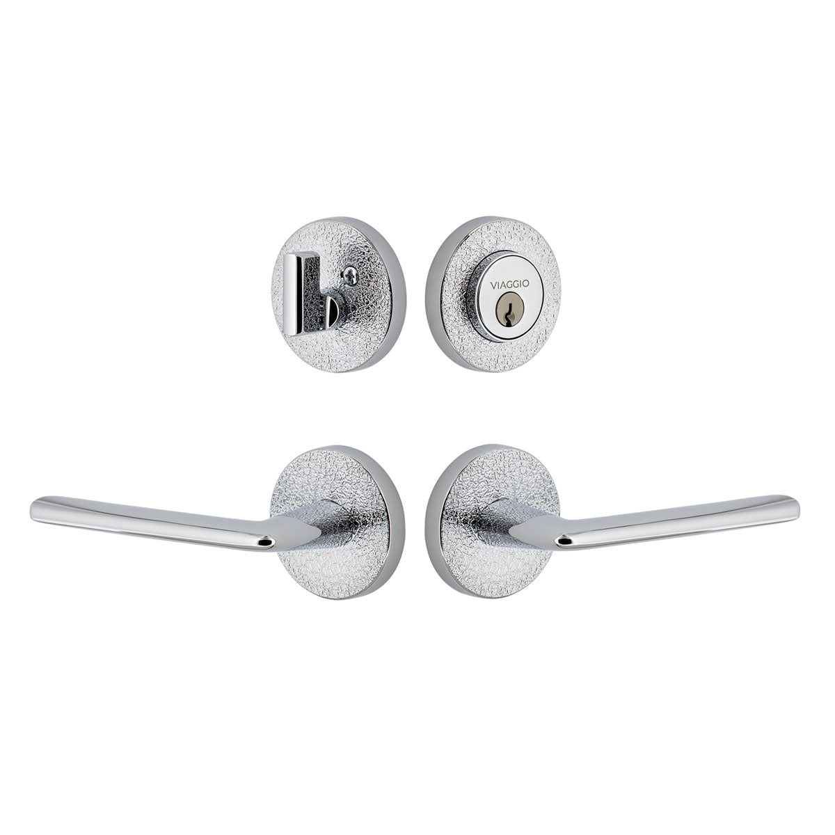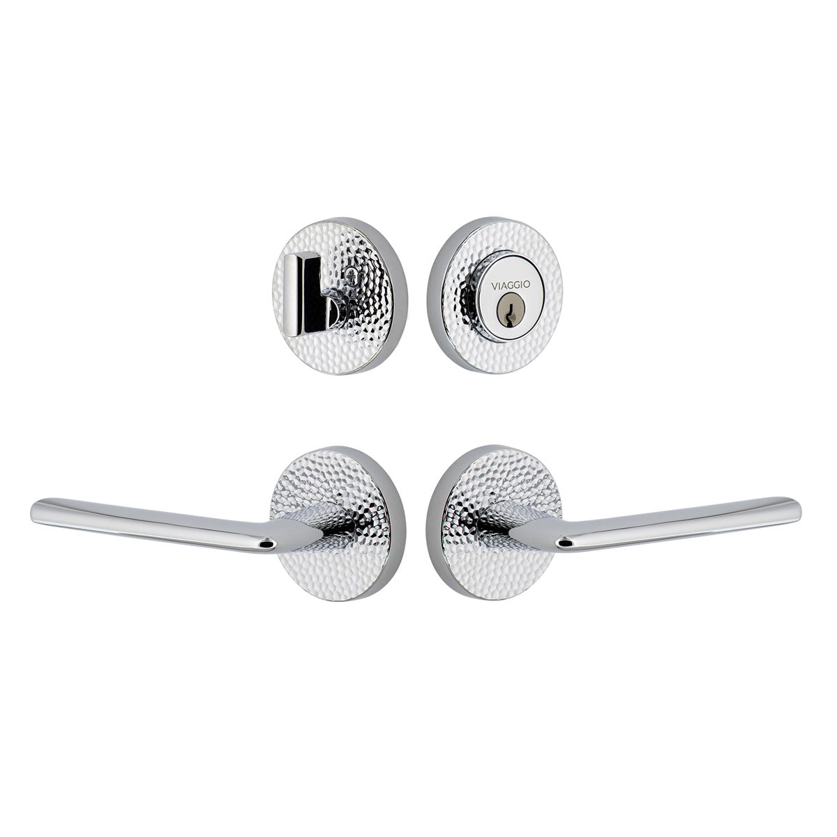 Circolo Hammered Rosette Entry Set with Brezza Lever in Bright Chrome