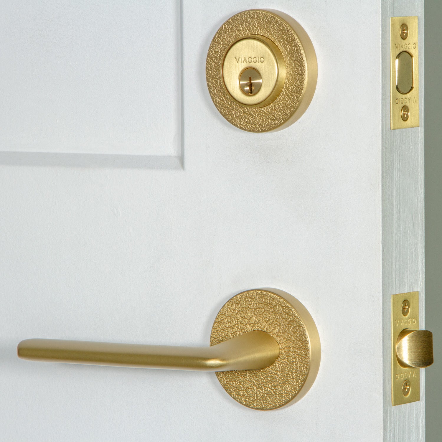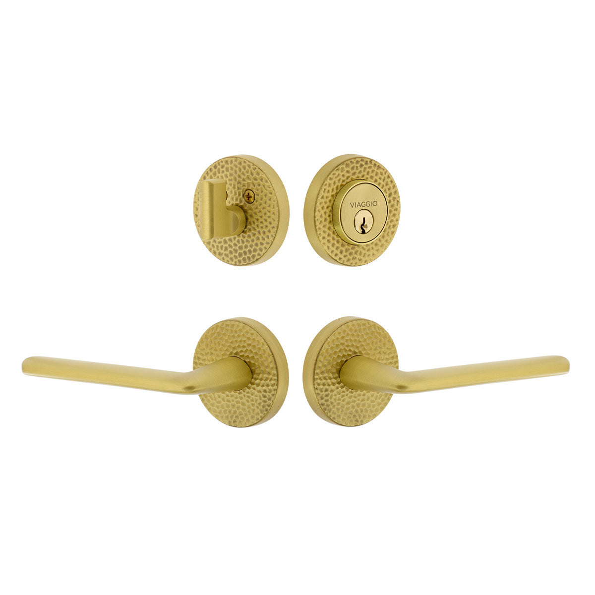 Circolo Hammered Rosette Entry Set with Brezza Lever in Satin Brass