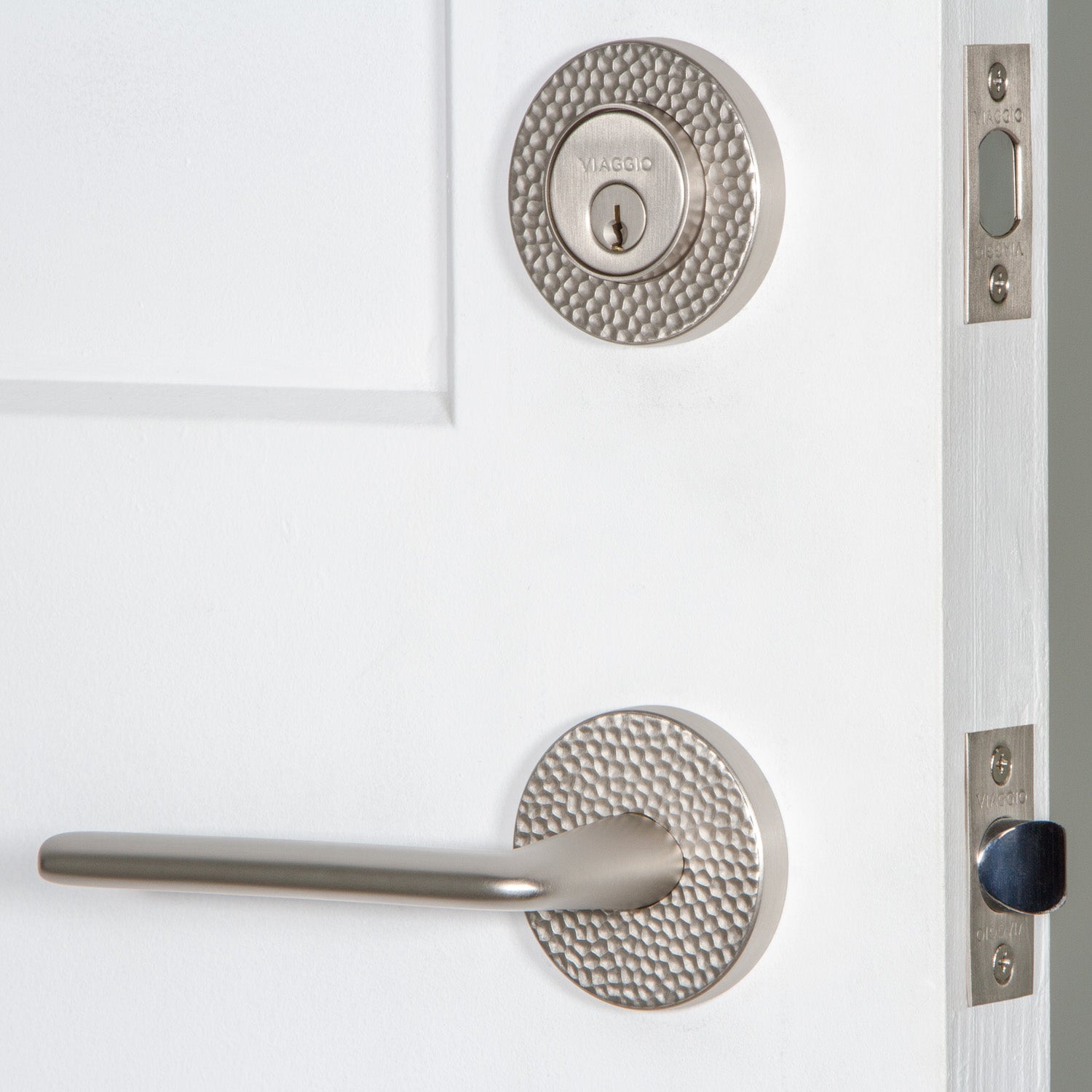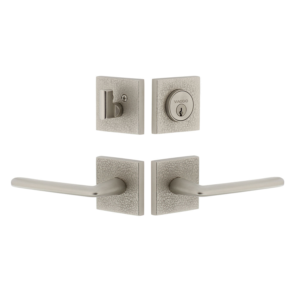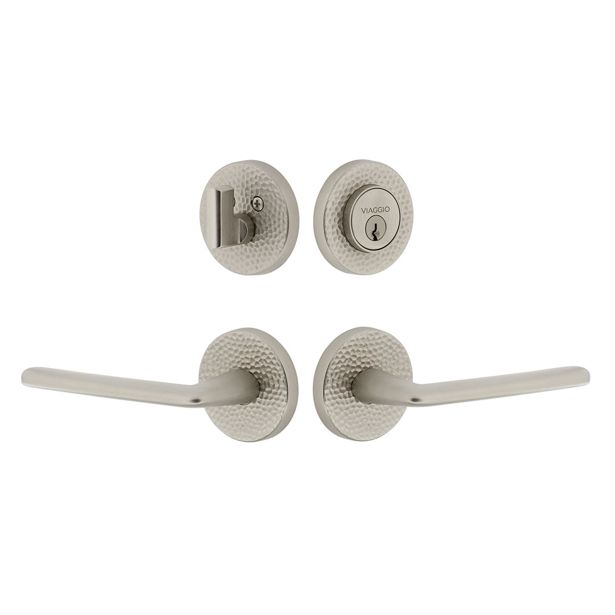 Circolo Hammered Rosette Entry Set with Brezza Lever in Satin Nickel