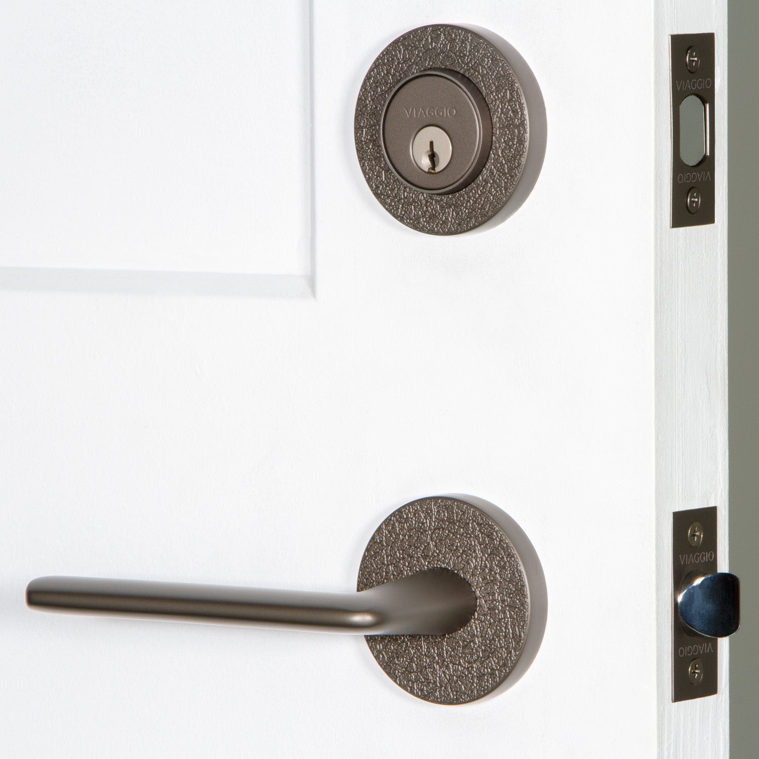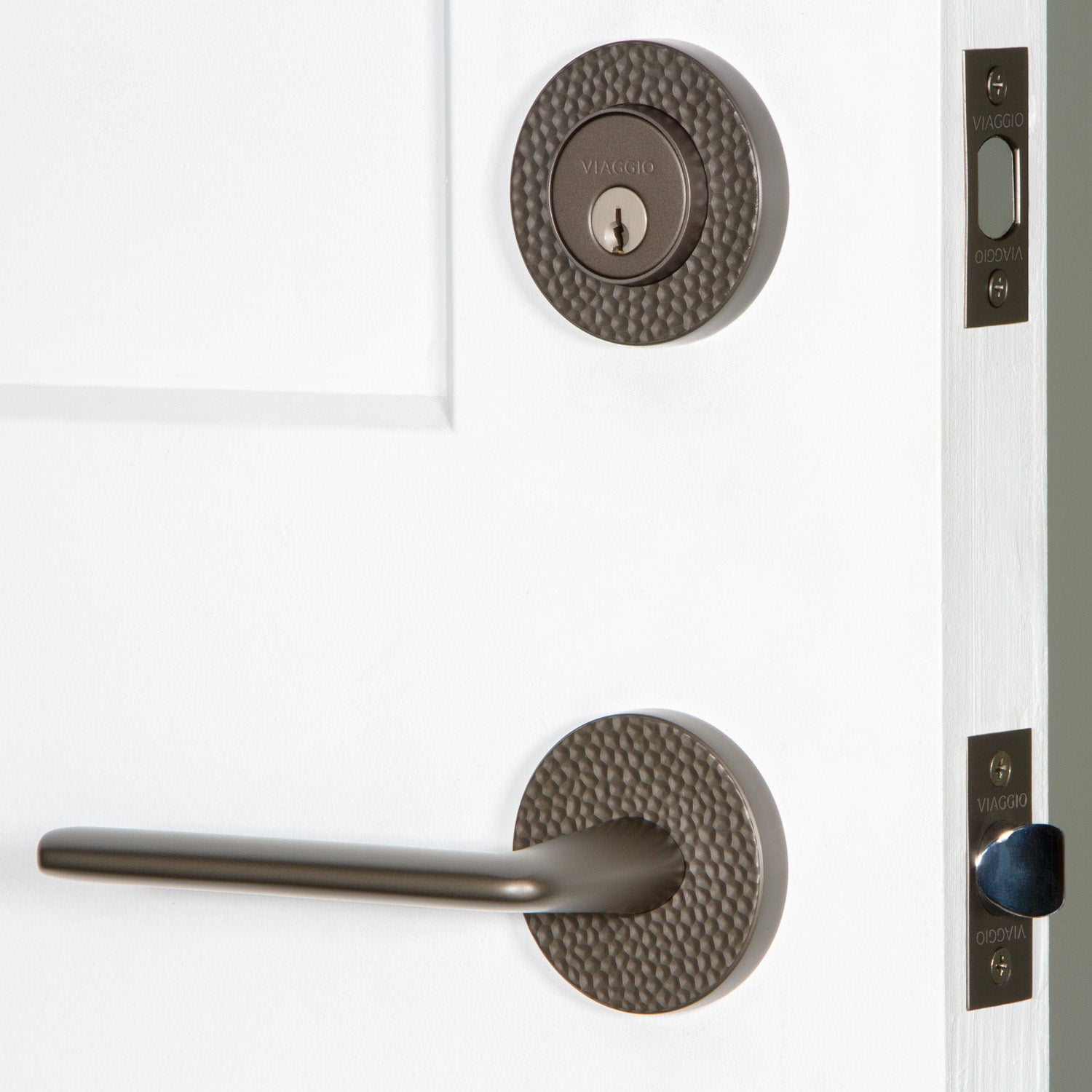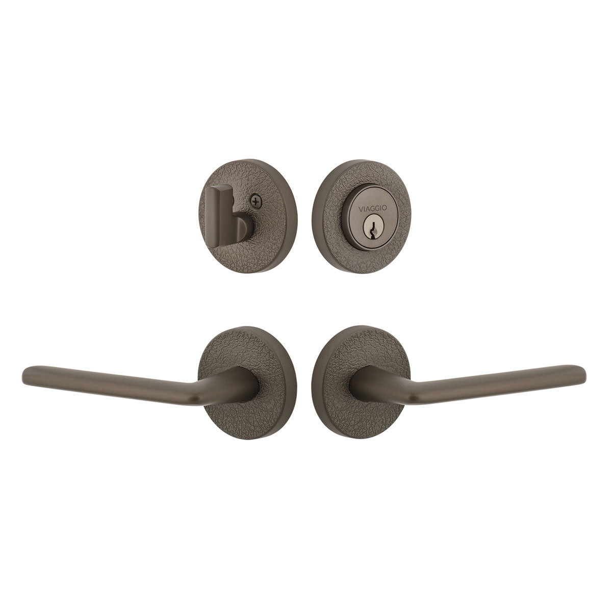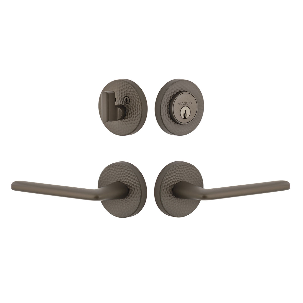 Circolo Hammered Rosette Entry Set with Brezza Lever in Titanium Gray