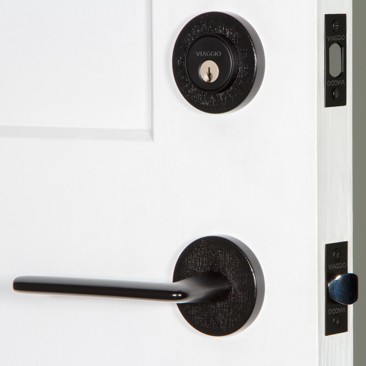 Circolo Linen Rosette Entry Set with Brezza Lever in Satin Black