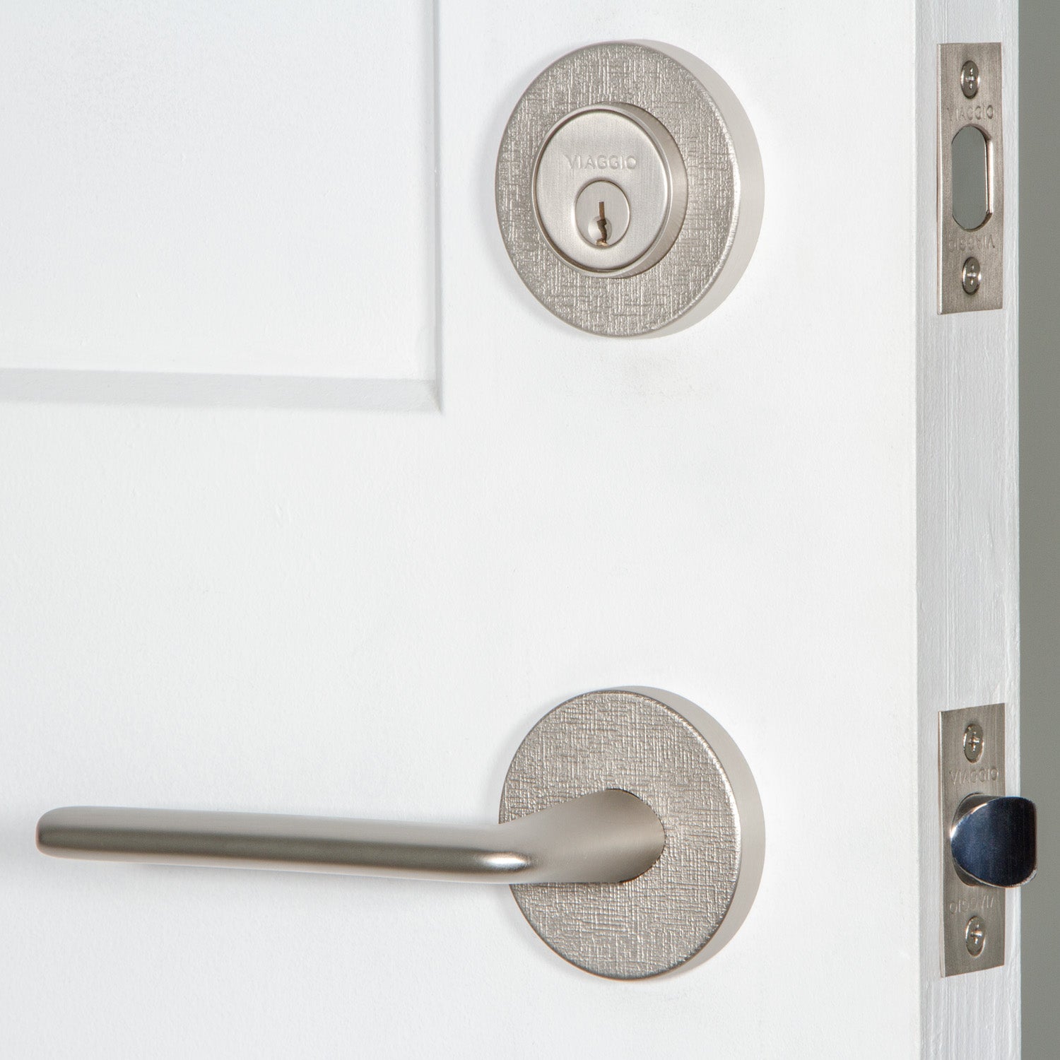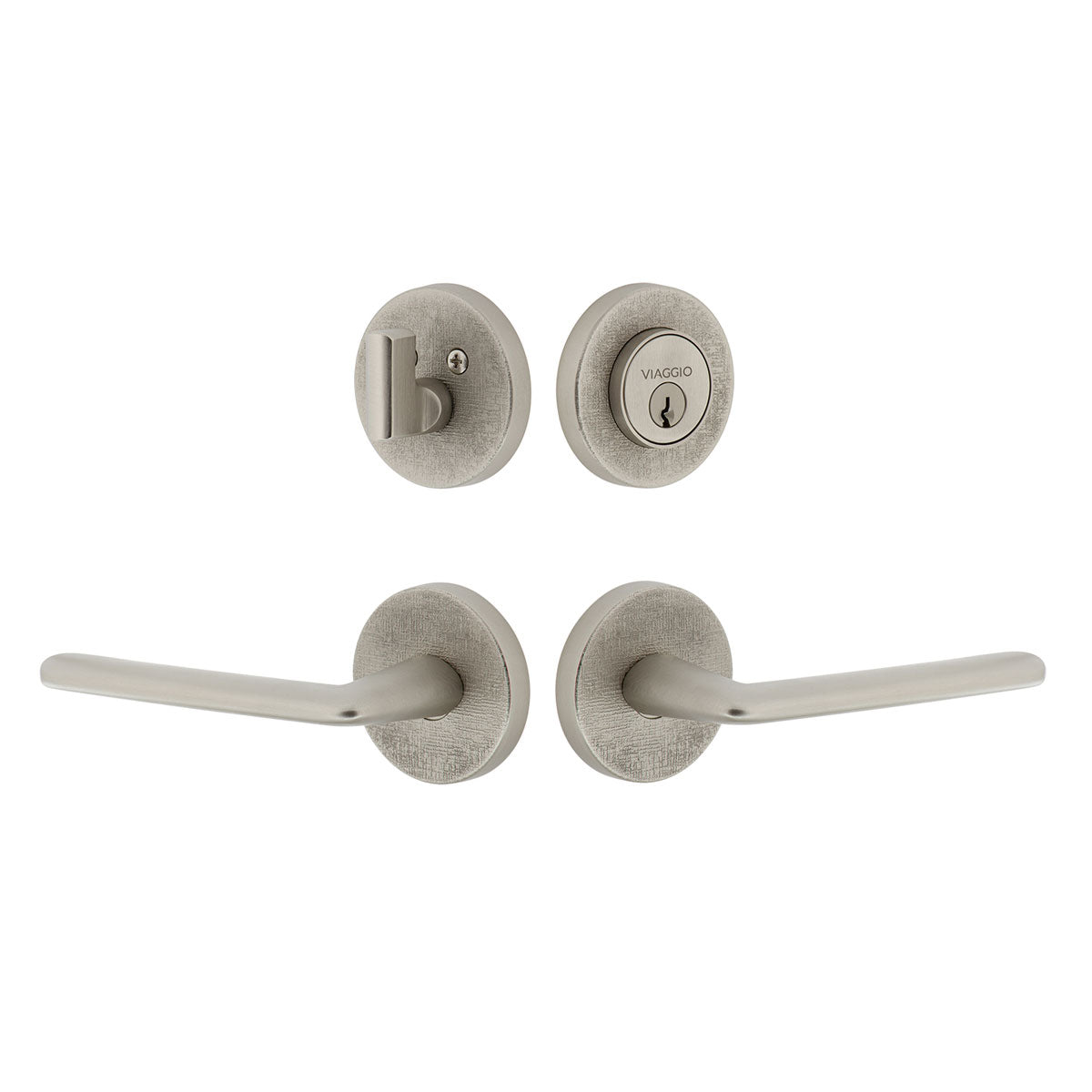 Circolo Linen Rosette Entry Set with Brezza Lever in Satin Nickel