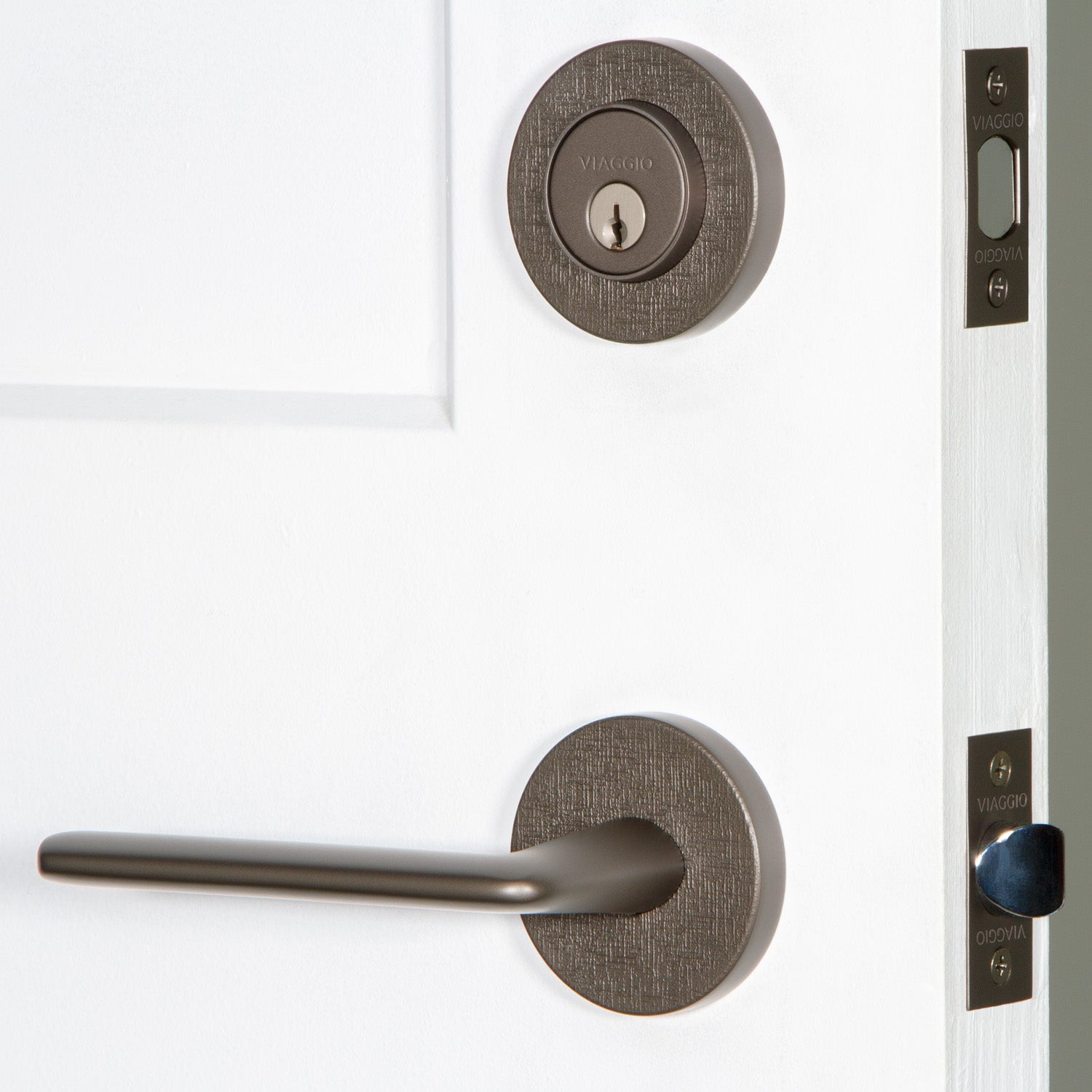 Circolo Linen Rosette Entry Set with Brezza Lever in Titanium Gray