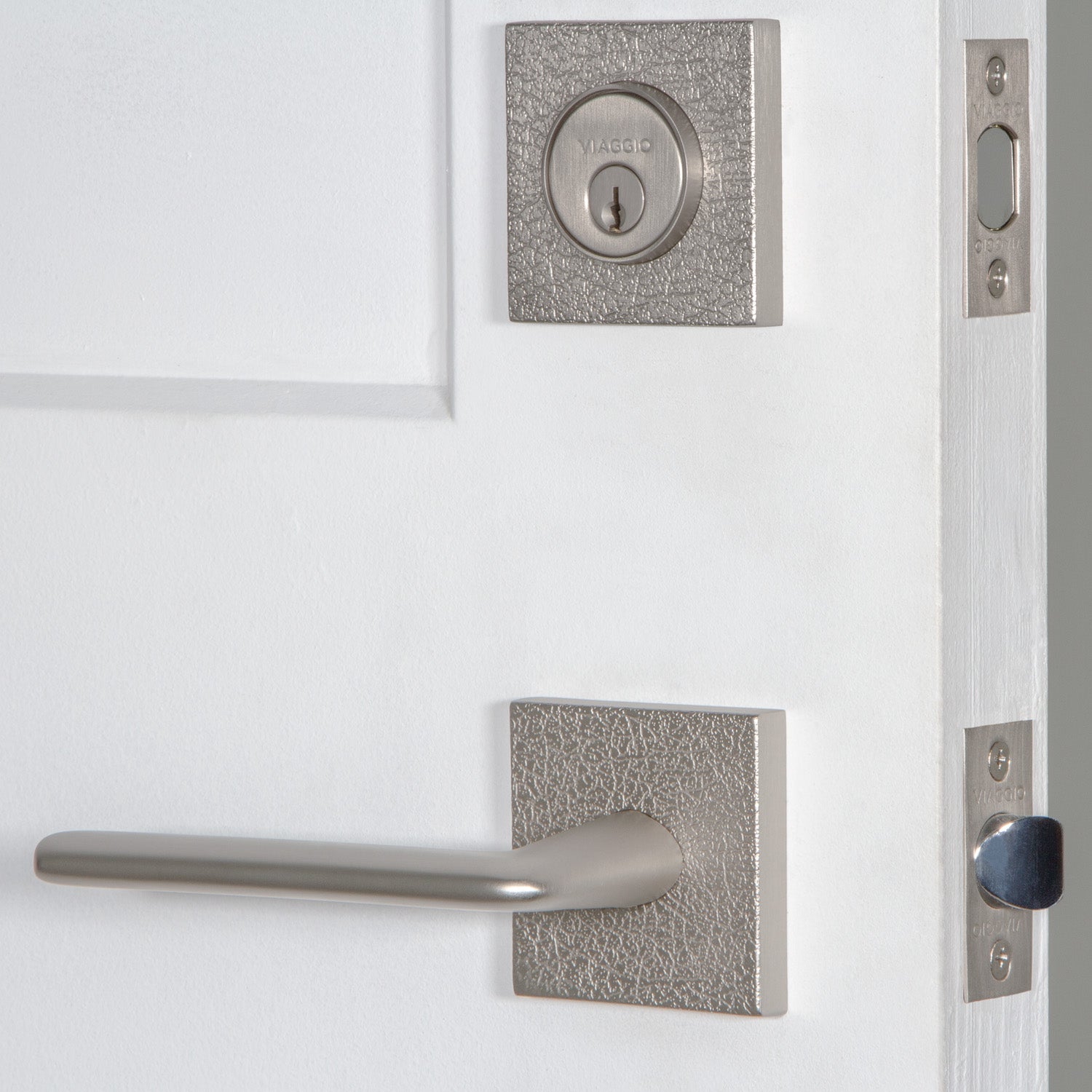 Quadrato Leather Rosette Entry Set with Brezza Lever in Satin Nickel