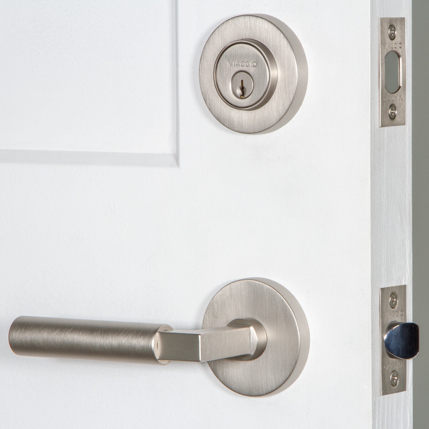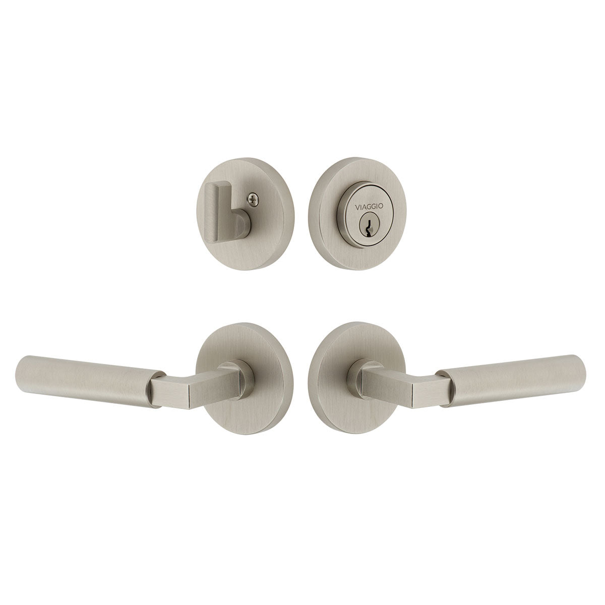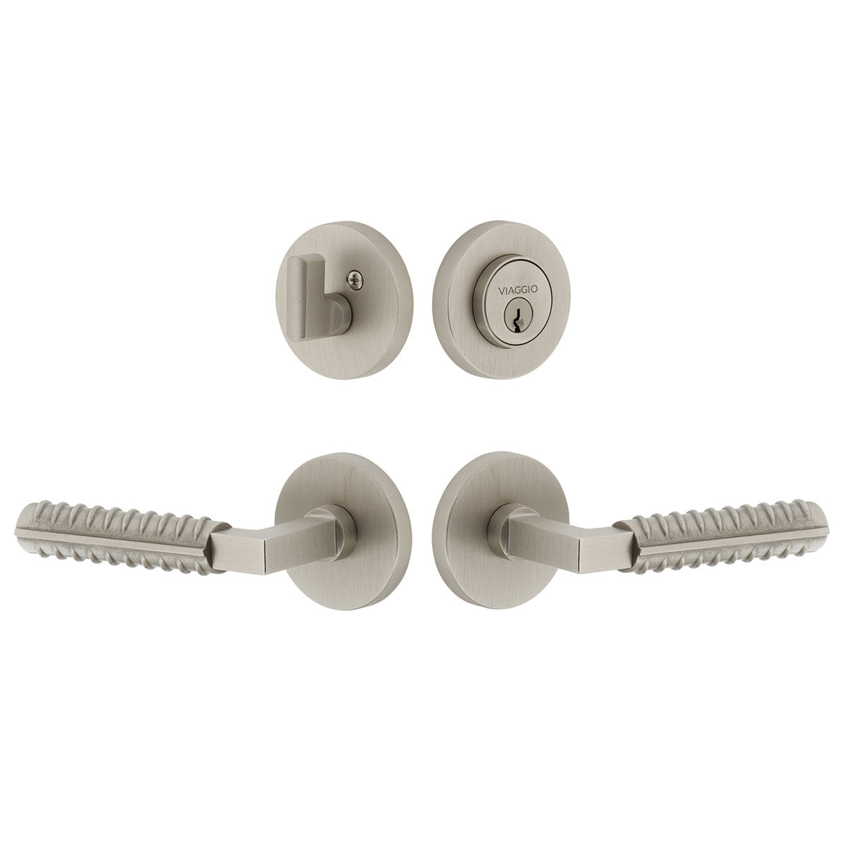 Circolo Rosette Entry Set with Contempo Lever in Satin Nickel