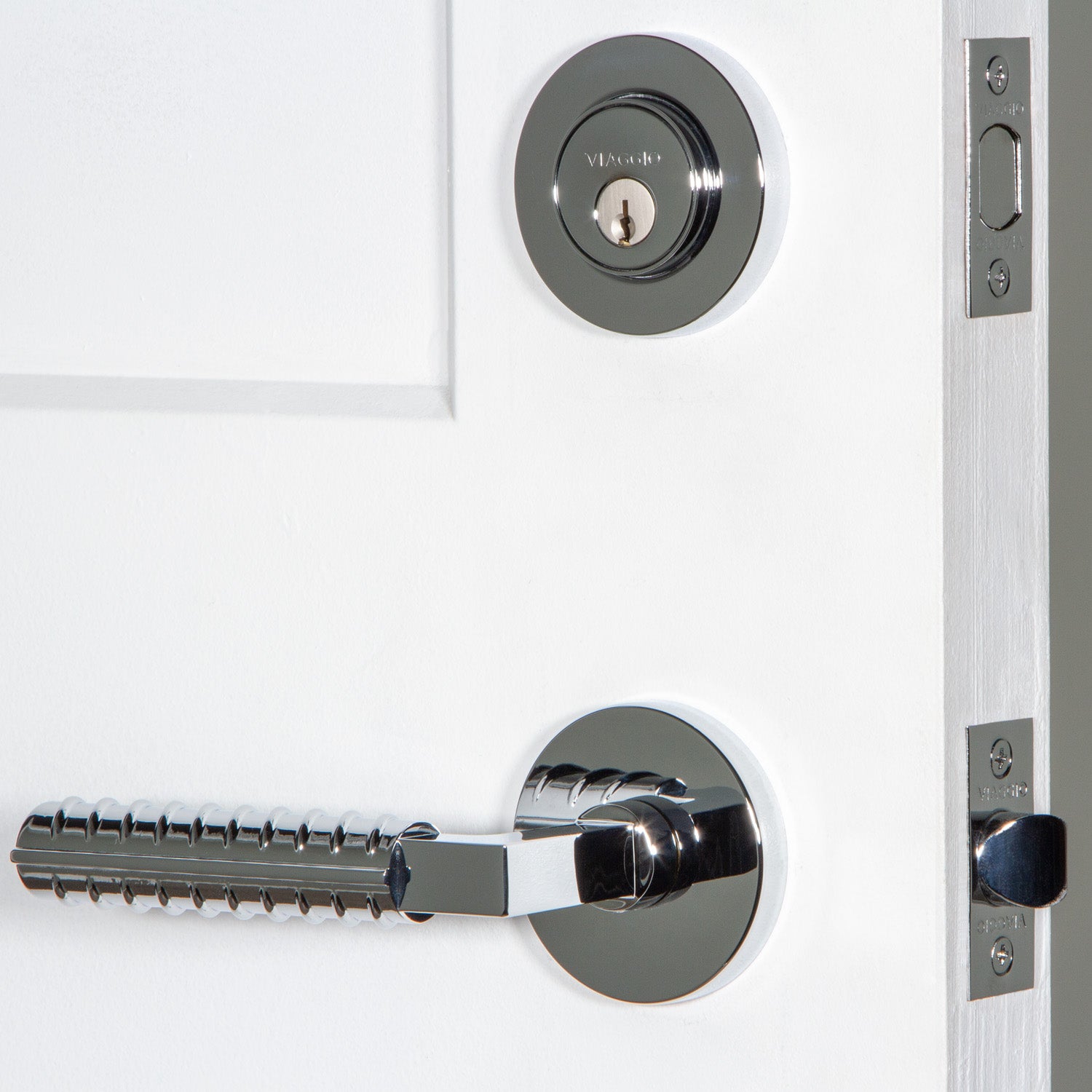 Circolo Rosette Entry Set with Contempo Rebar Lever in Bright Chrome