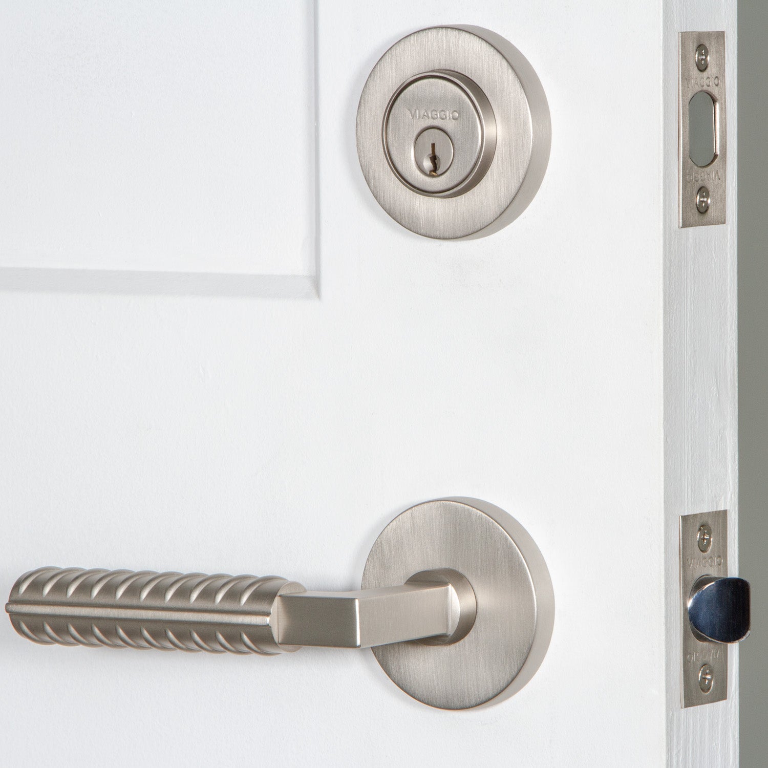 Circolo Rosette Entry Set with Contempo Rebar Lever in Satin Nickel