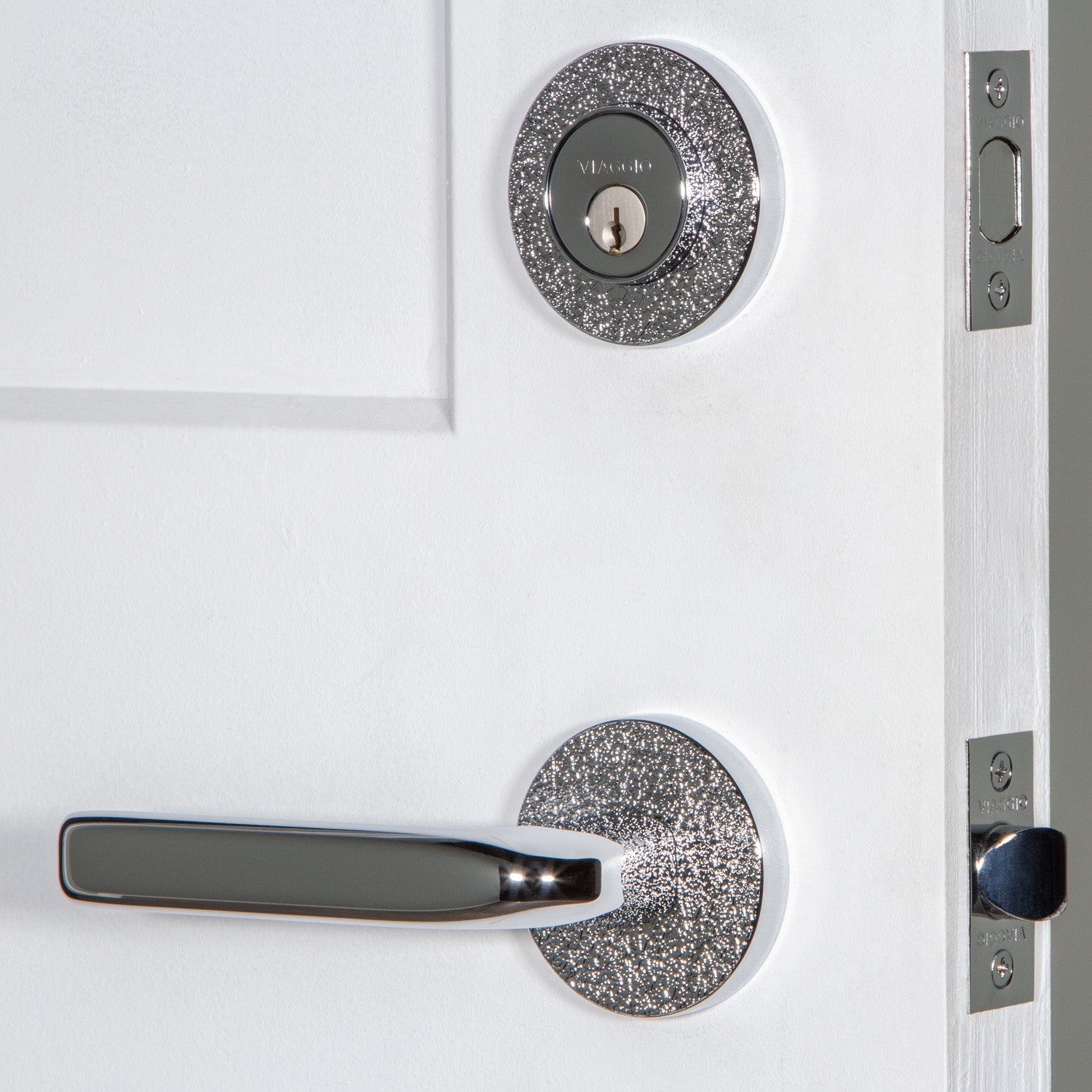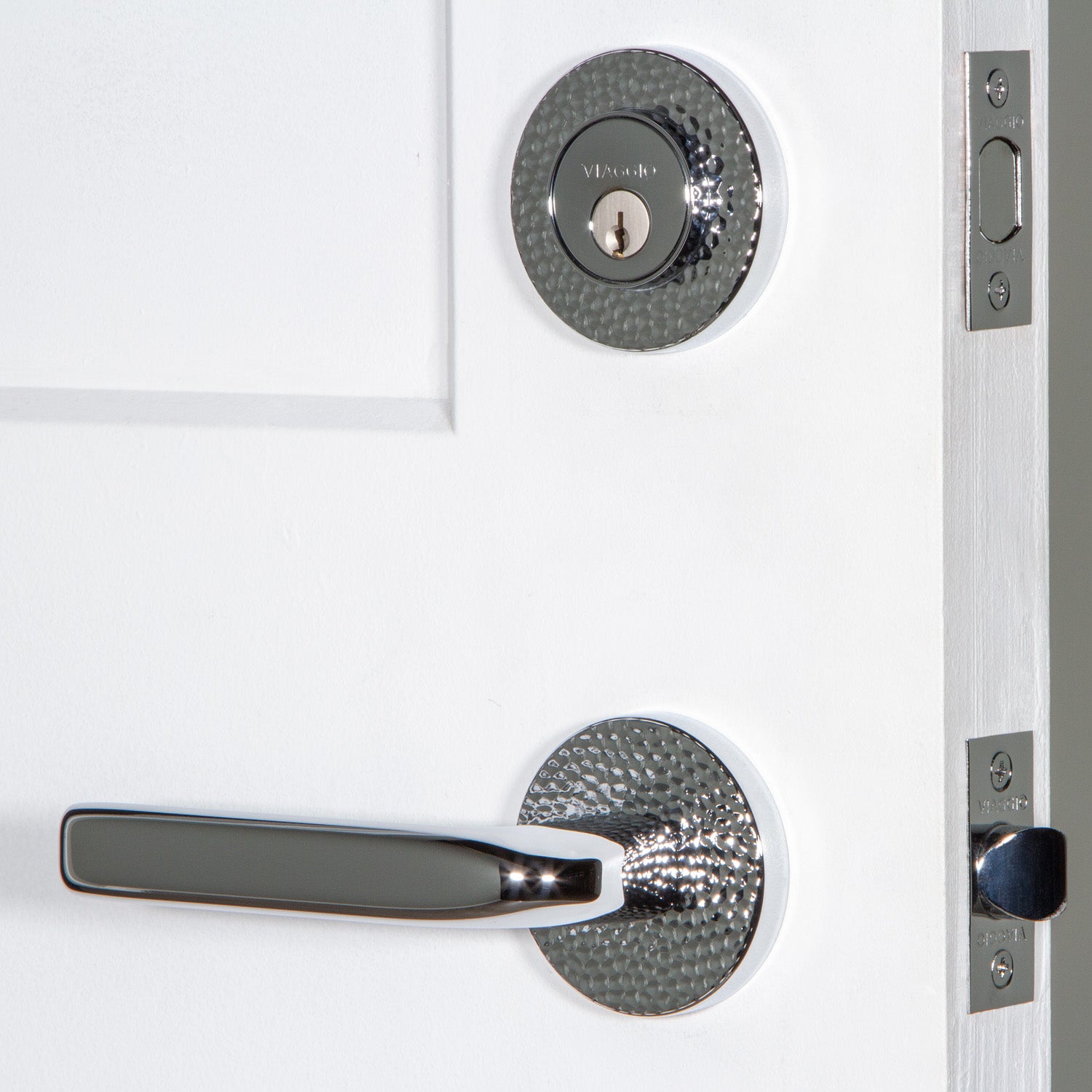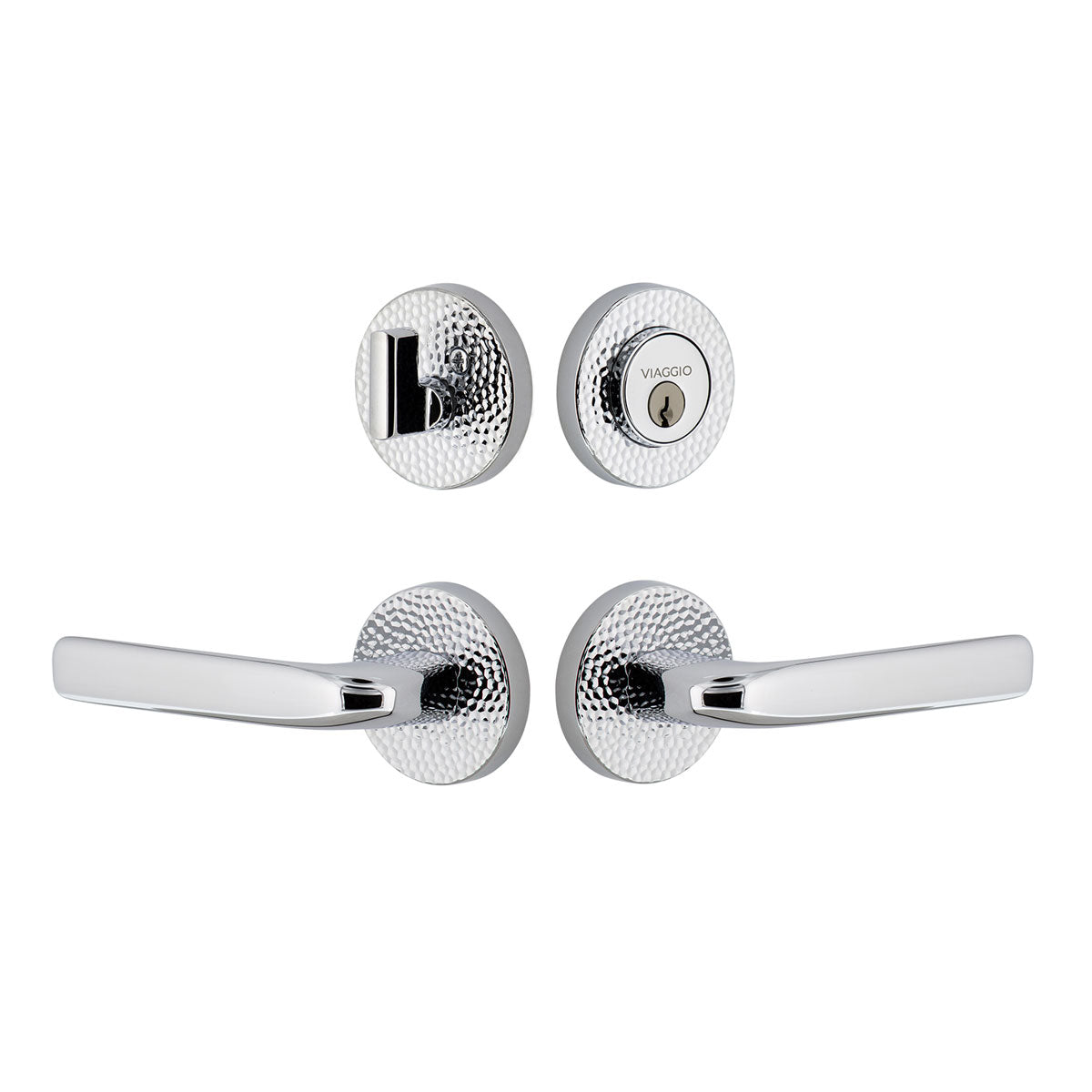 Circolo Hammered Rosette Entry Set with Bella Lever in Bright Chrome