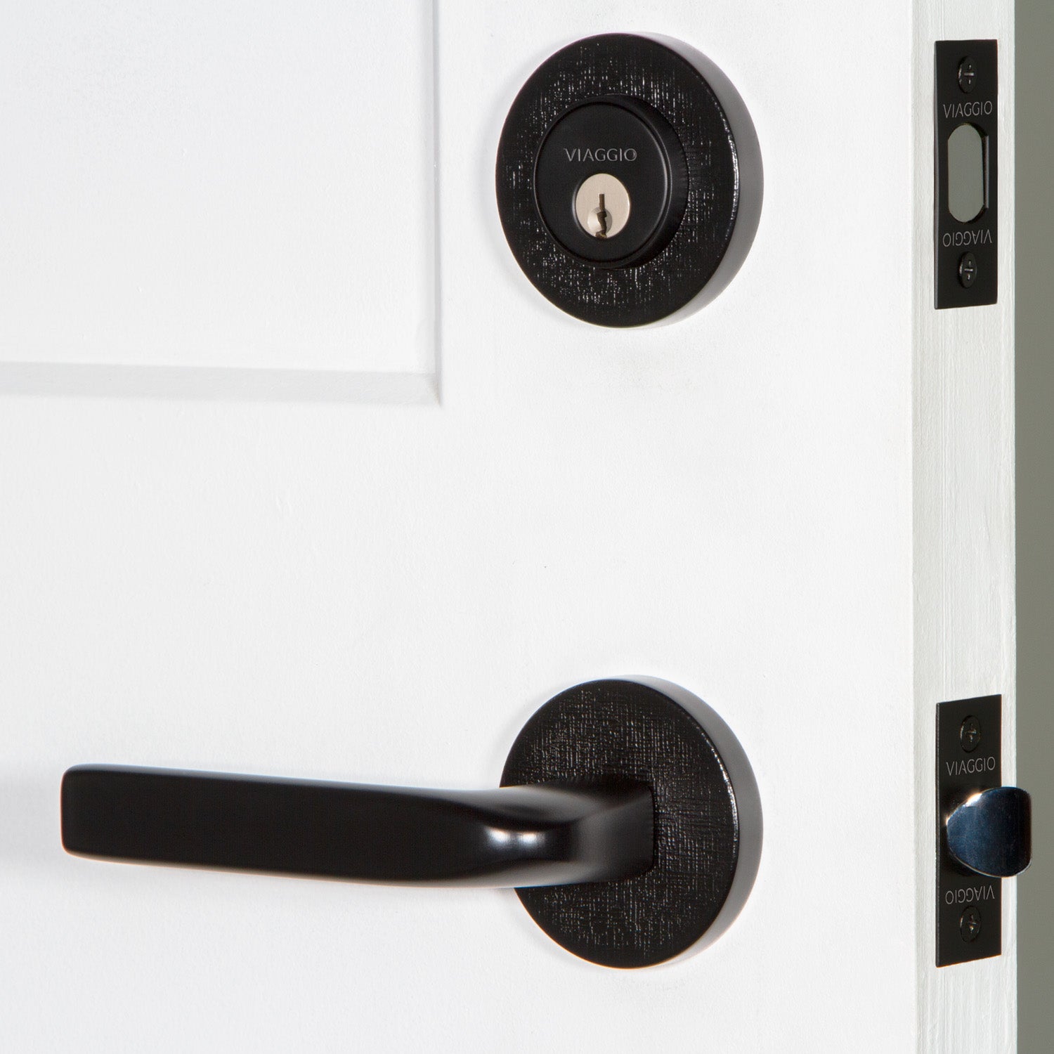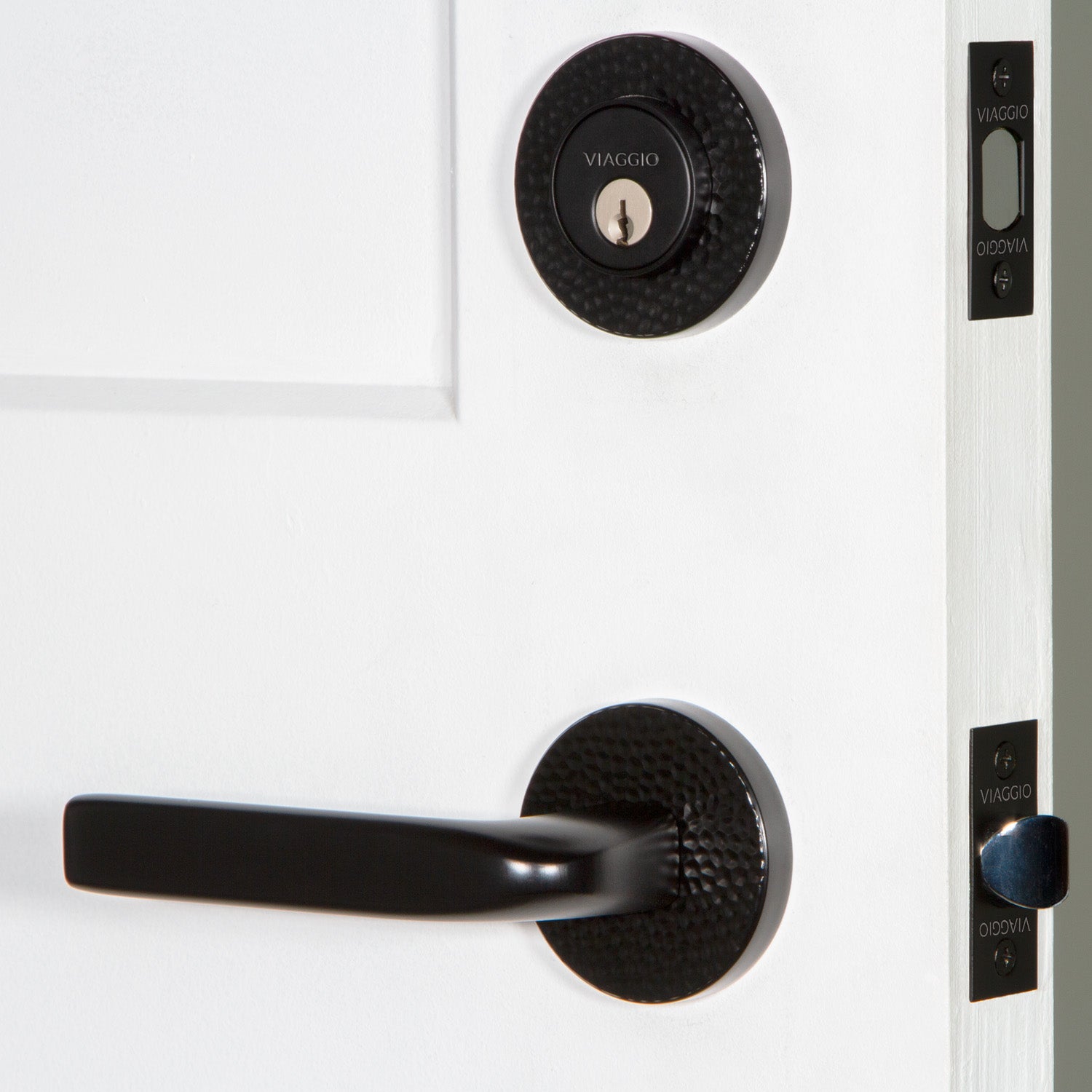 Circolo Hammered Rosette Entry Set with Bella Lever in Satin Black