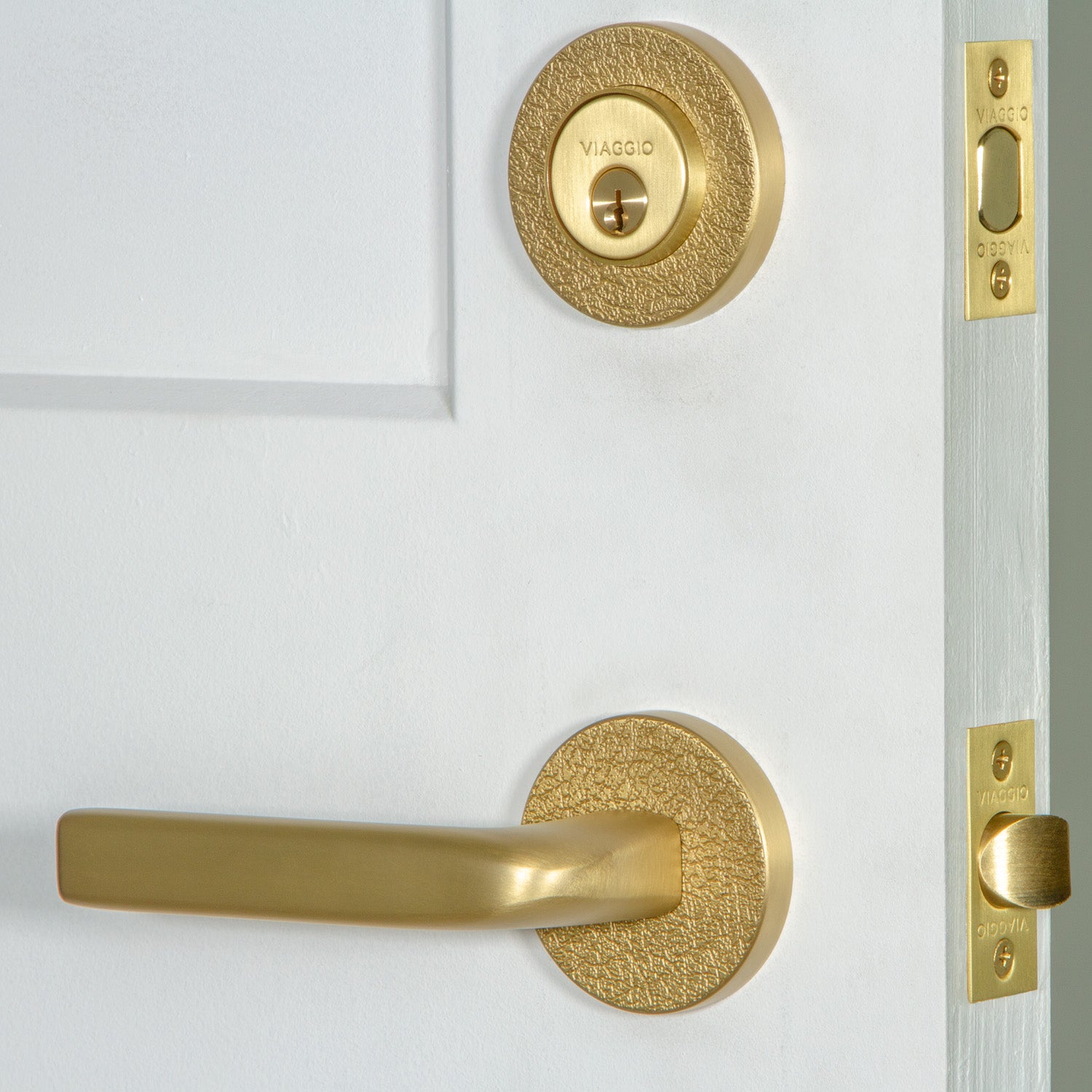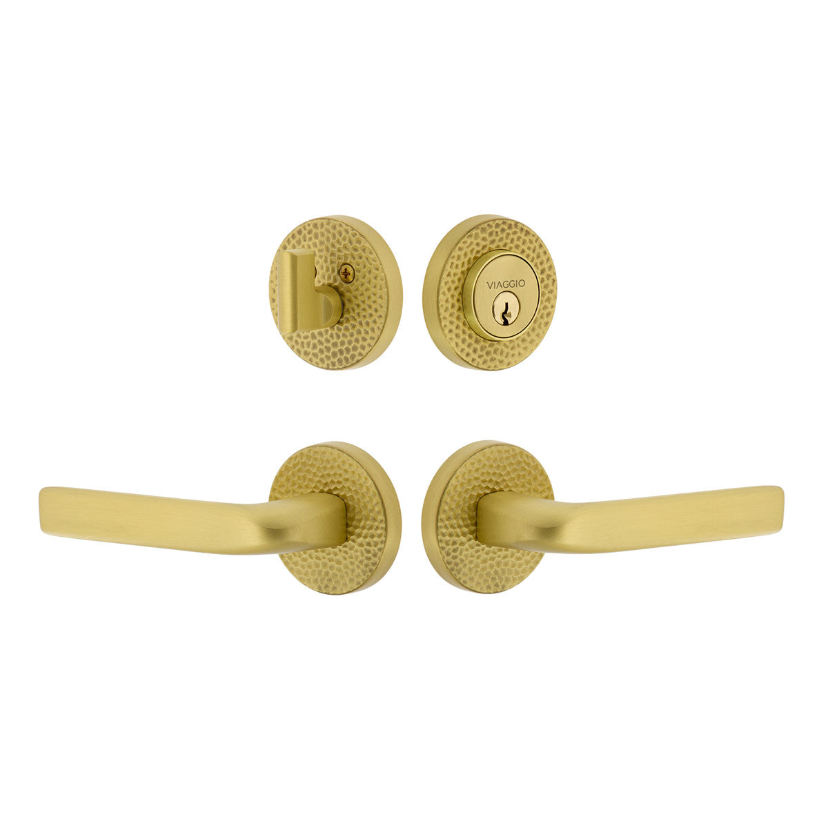 Circolo Hammered Rosette Entry Set with Bella Lever in Satin Brass