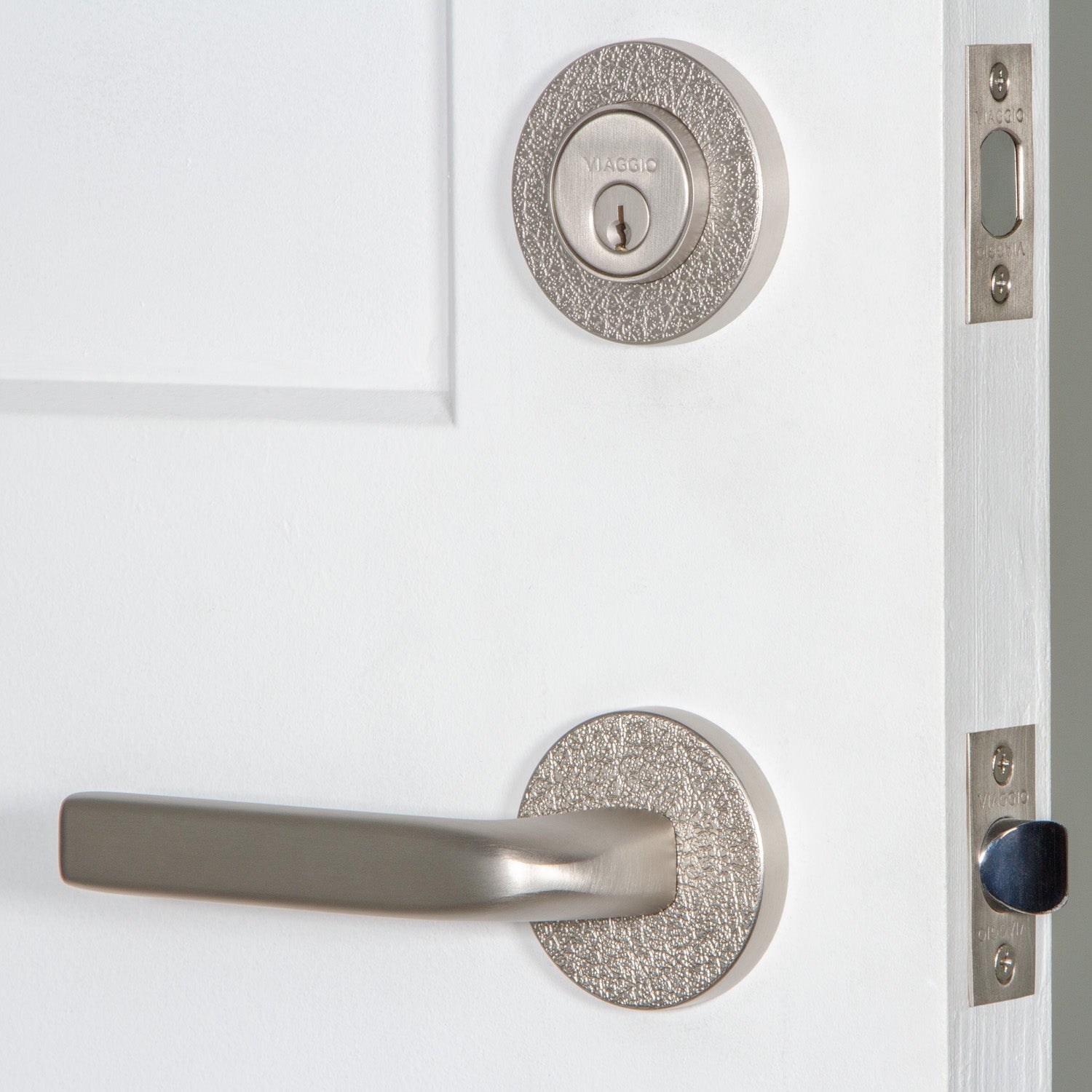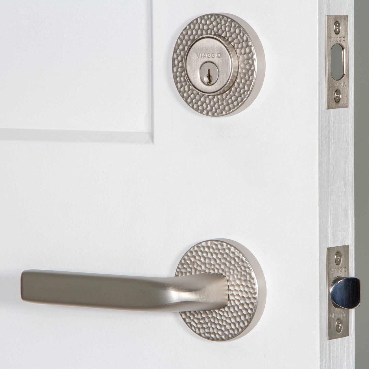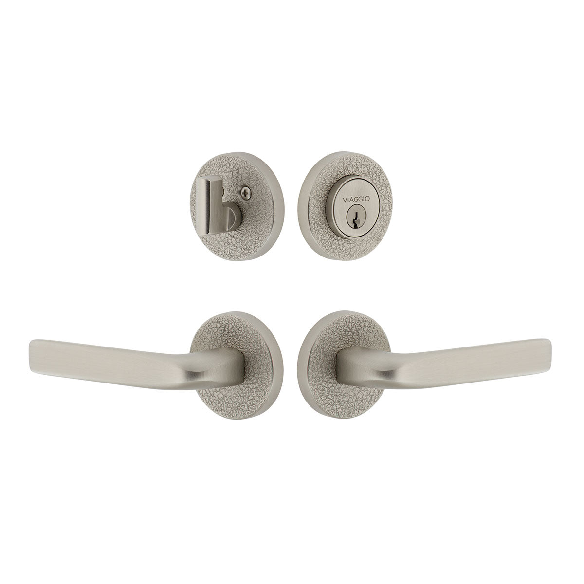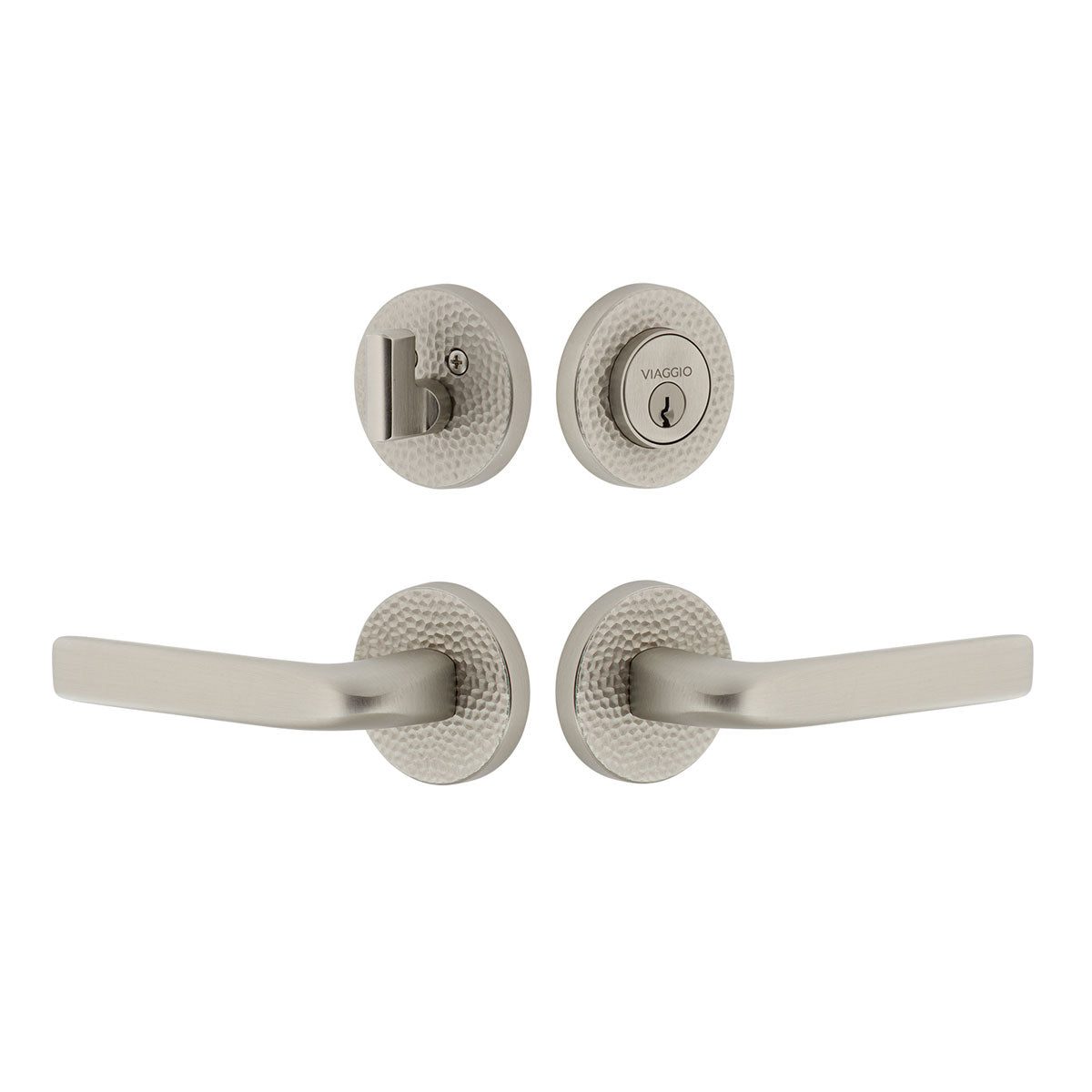 Circolo Hammered Rosette Entry Set with Bella Lever in Satin Nickel