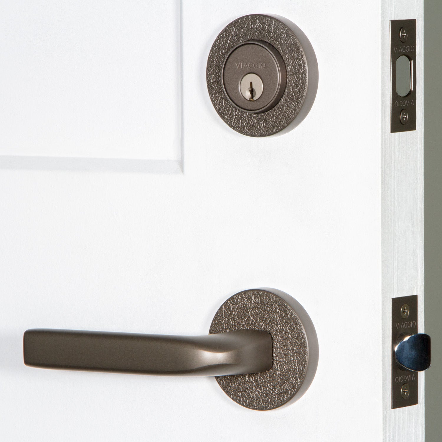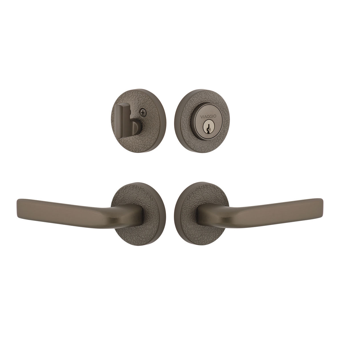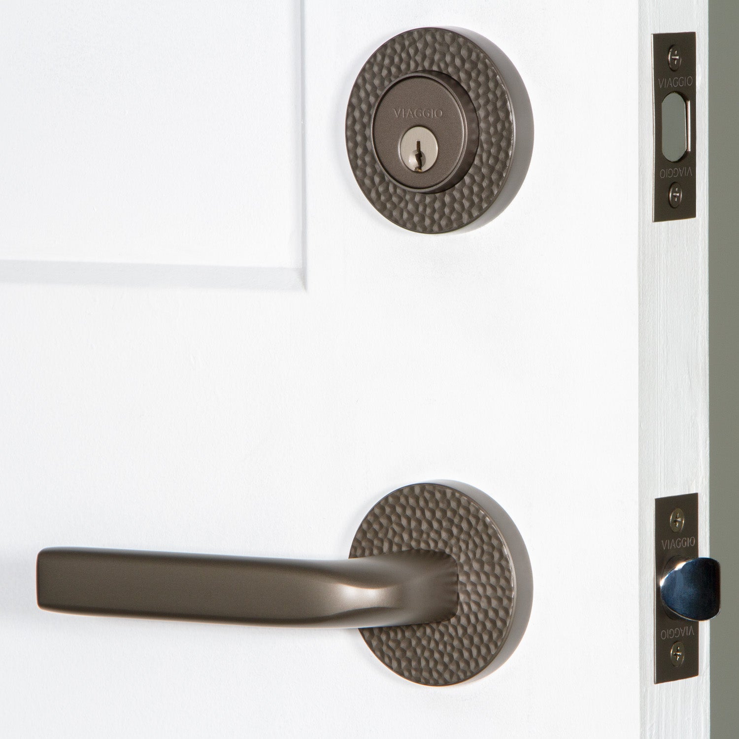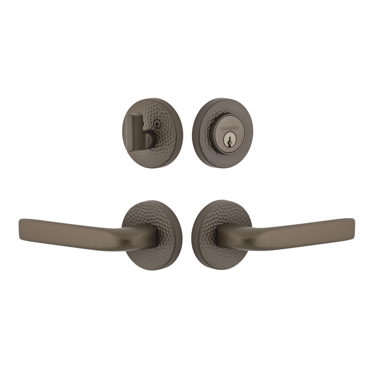 Circolo Hammered Rosette Entry Set with Bella Lever in Titanium Gray