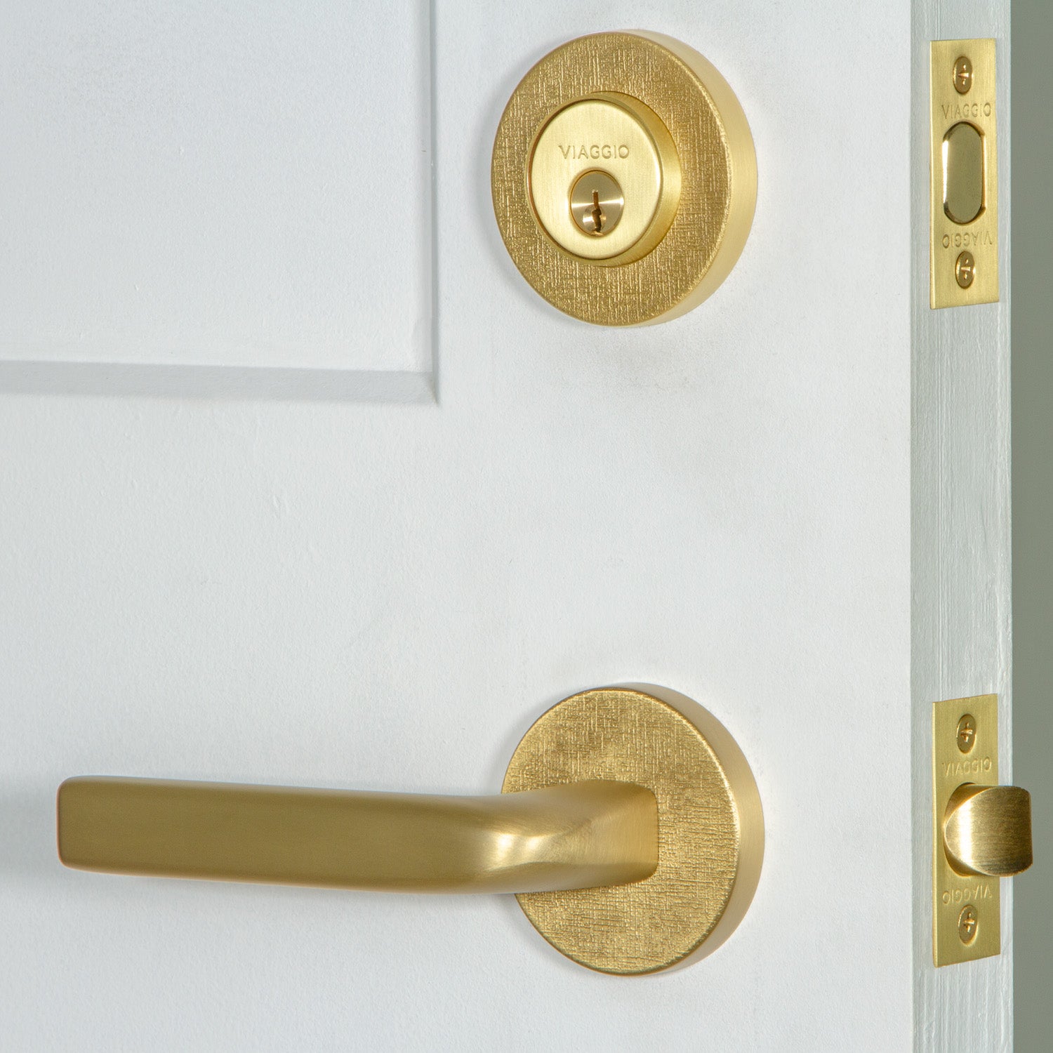 Circolo Linen Rosette Entry Set with Bella Lever in Satin Brass