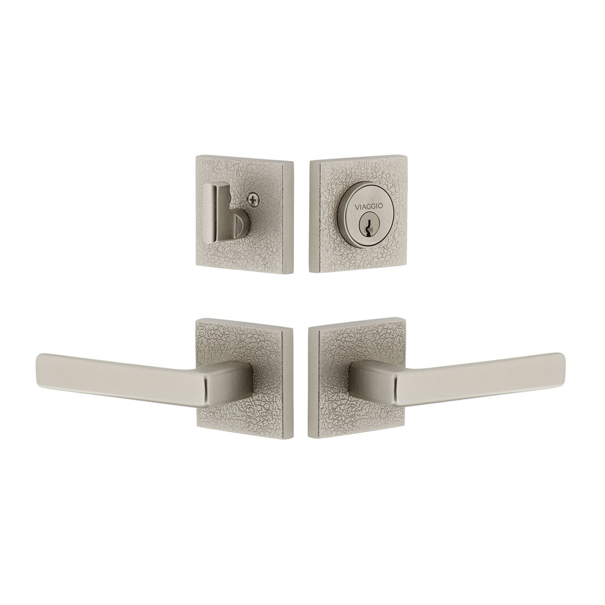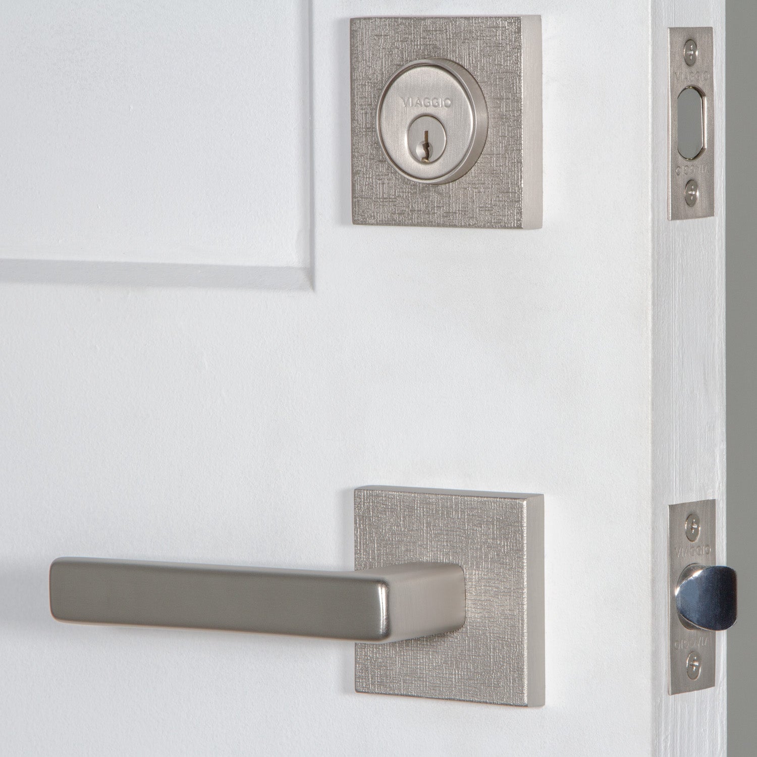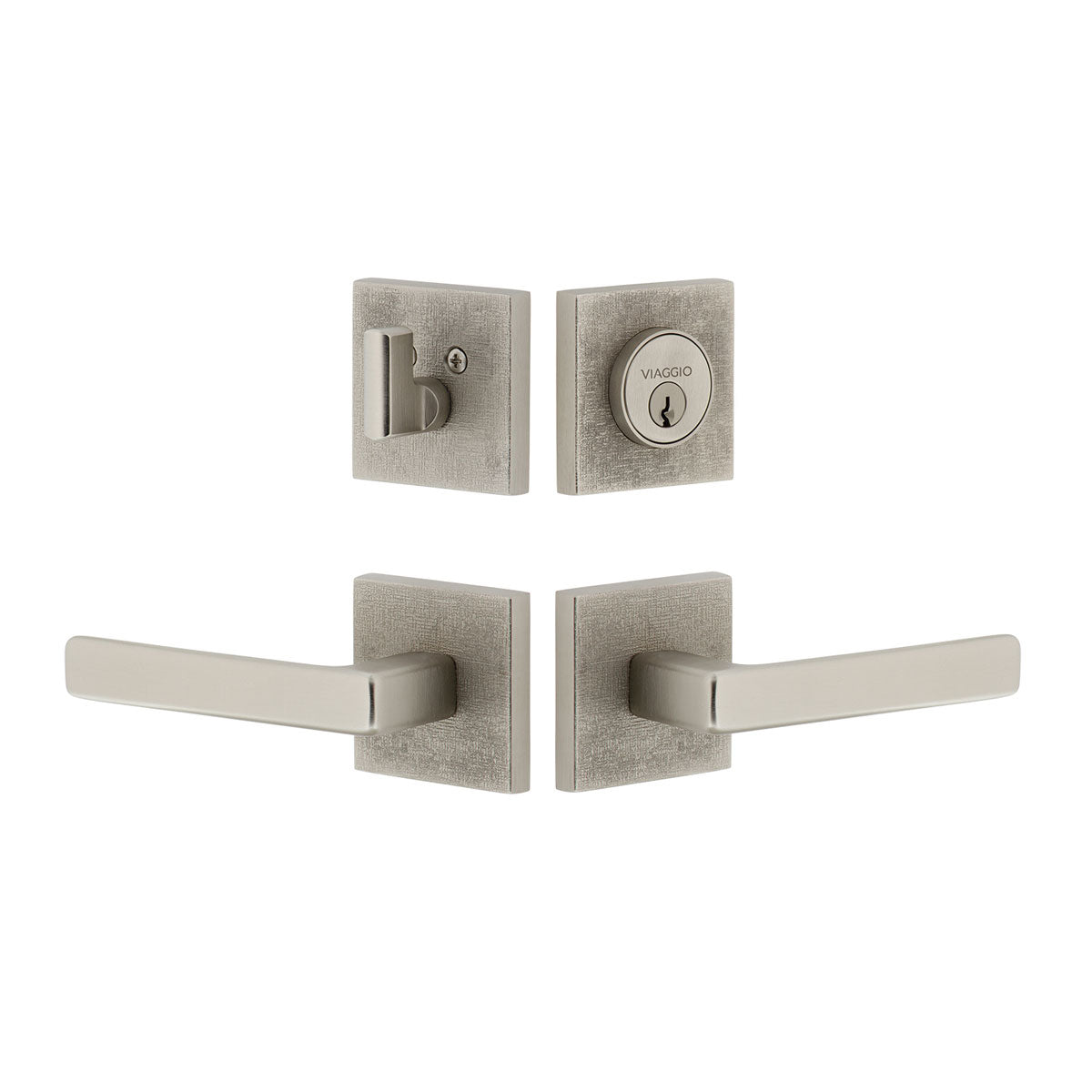 Quadrato Linen Rosette Entry Set with Lusso Lever in Satin Nickel