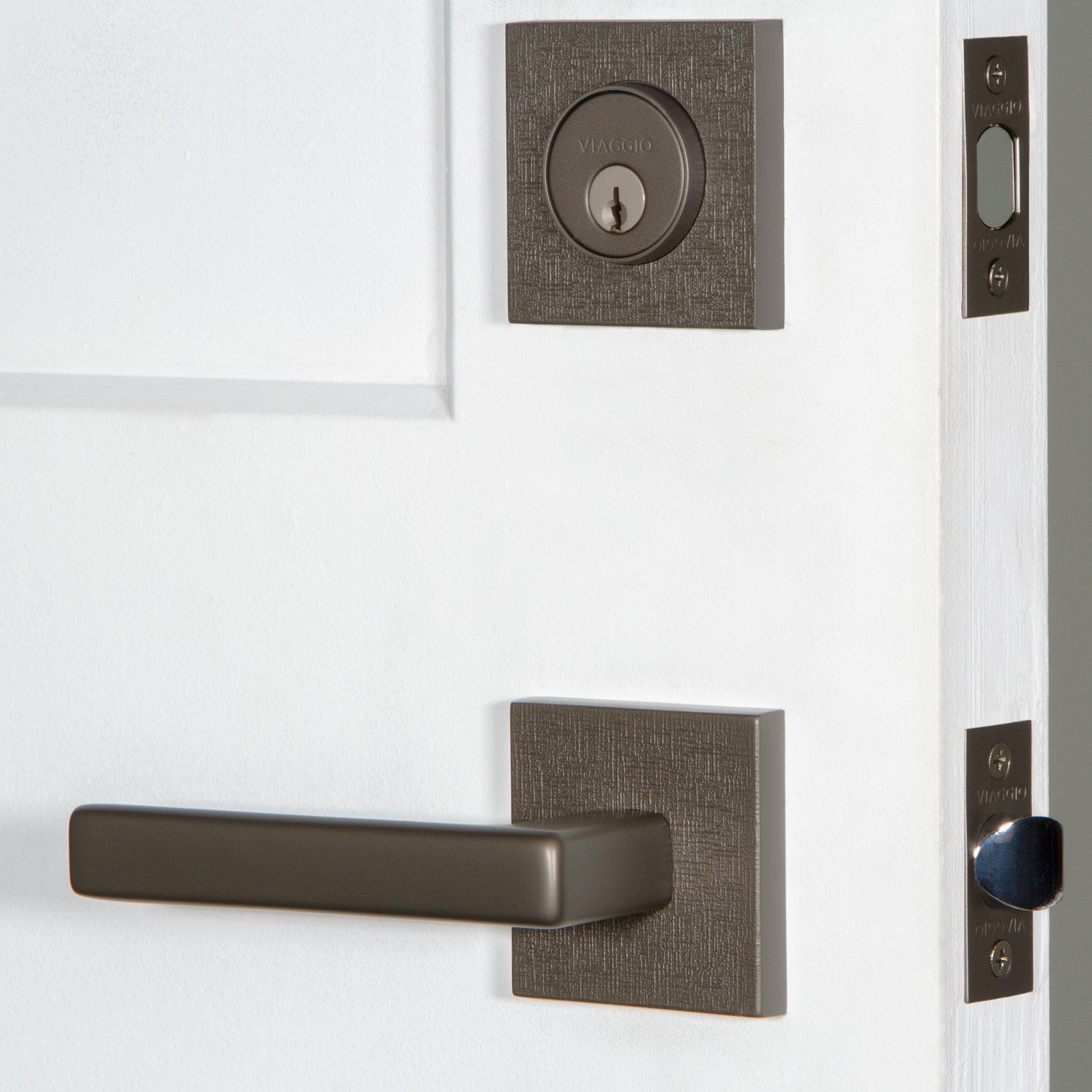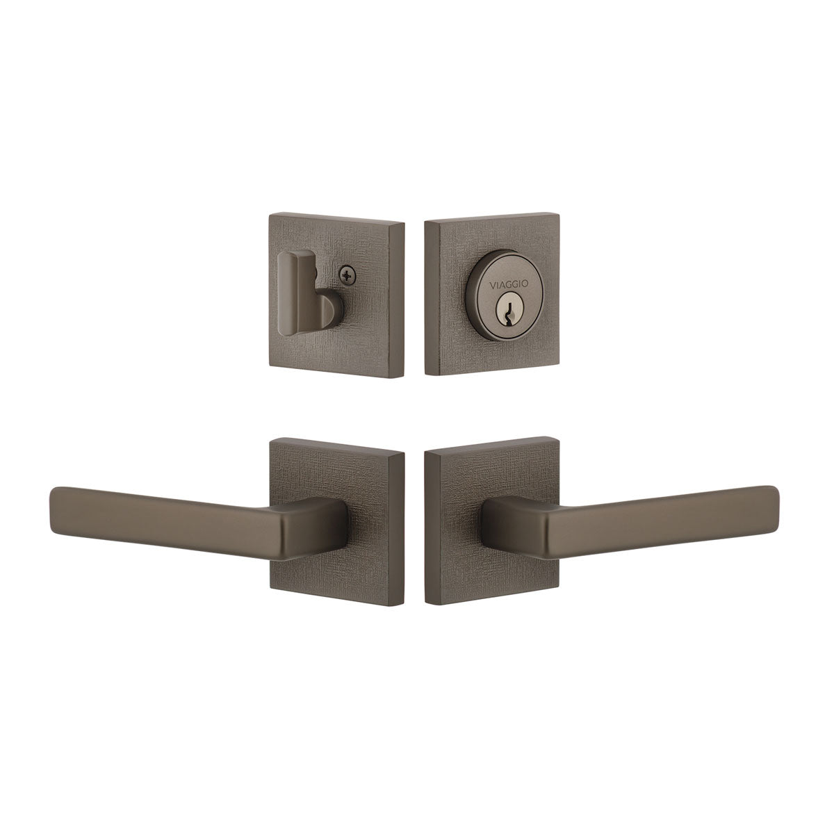 Quadrato Linen Rosette Entry Set with Lusso Lever in Titanium Gray