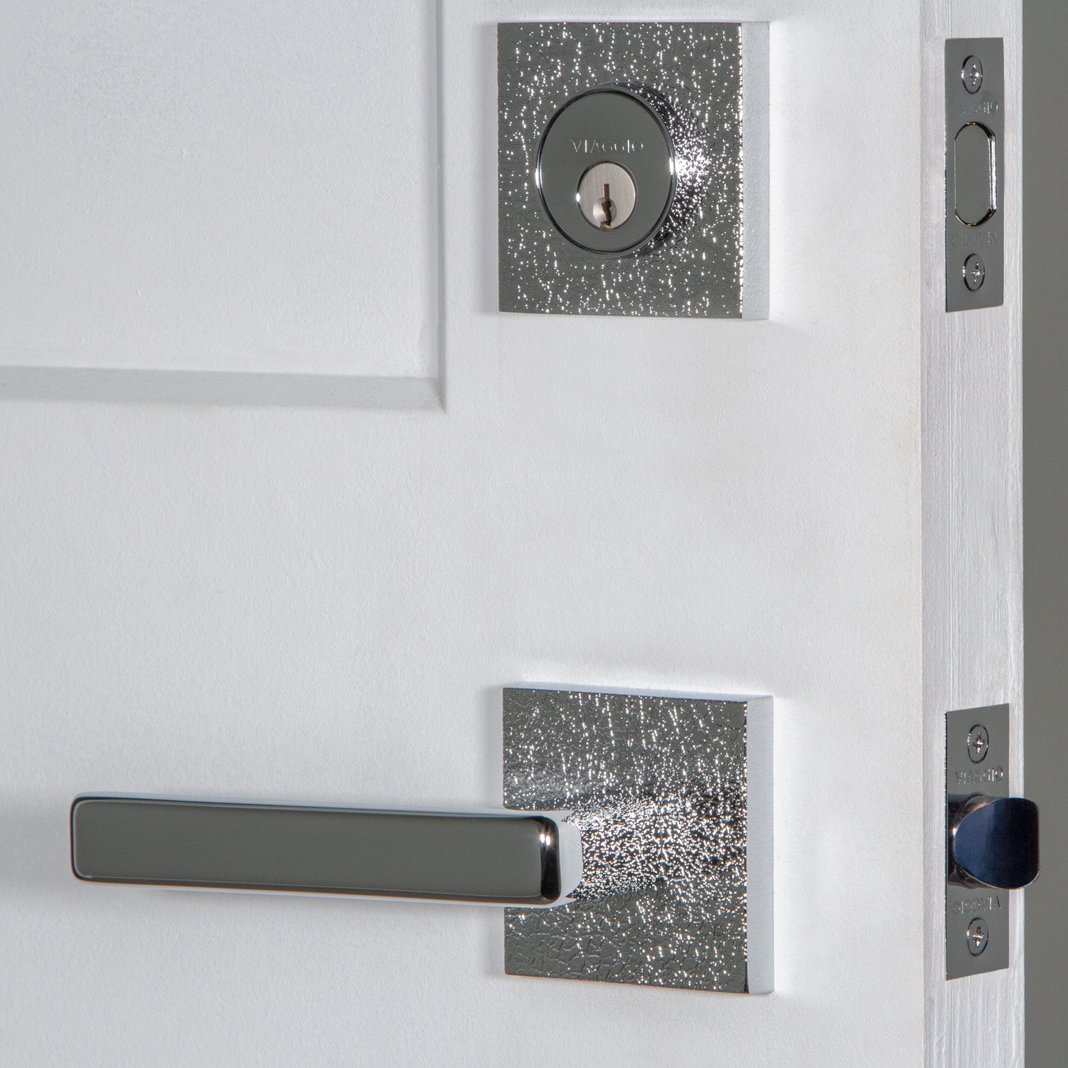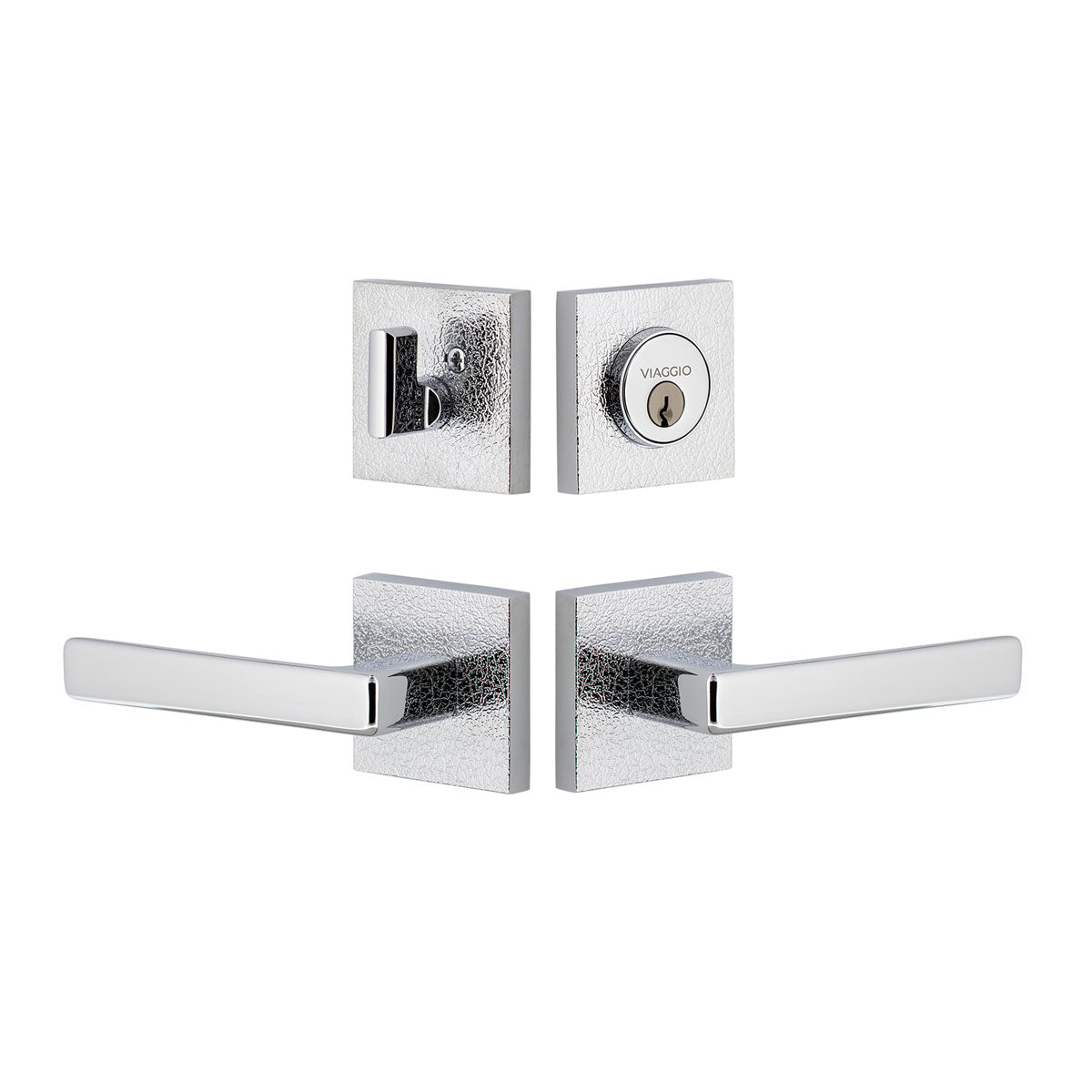 Quadrato Hammered Rosette Entry Set with Lusso Lever in Bright Chrome